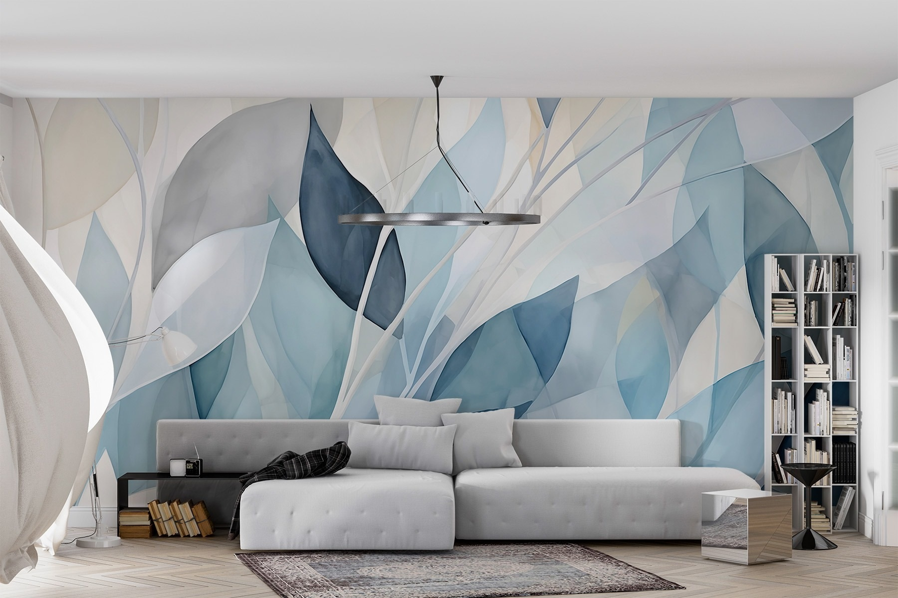 Transformeer je ruimtes met “Doorschijnende bladeren in zachte tinten”. Deze muurschildering vangt perfect de zachte dans van bladeren in een sereen palet en creëert een sfeer die net zo verfrissend is als een zomerbriesje. Stel je voor dat je wakker wordt met deze rustgevende aanblik – een mix van zacht blauw en gedempt groen die aanvoelt alsof de natuur net is binnengestapt. Het is alsof je een vredig bos in je woonkamer uitnodigt.