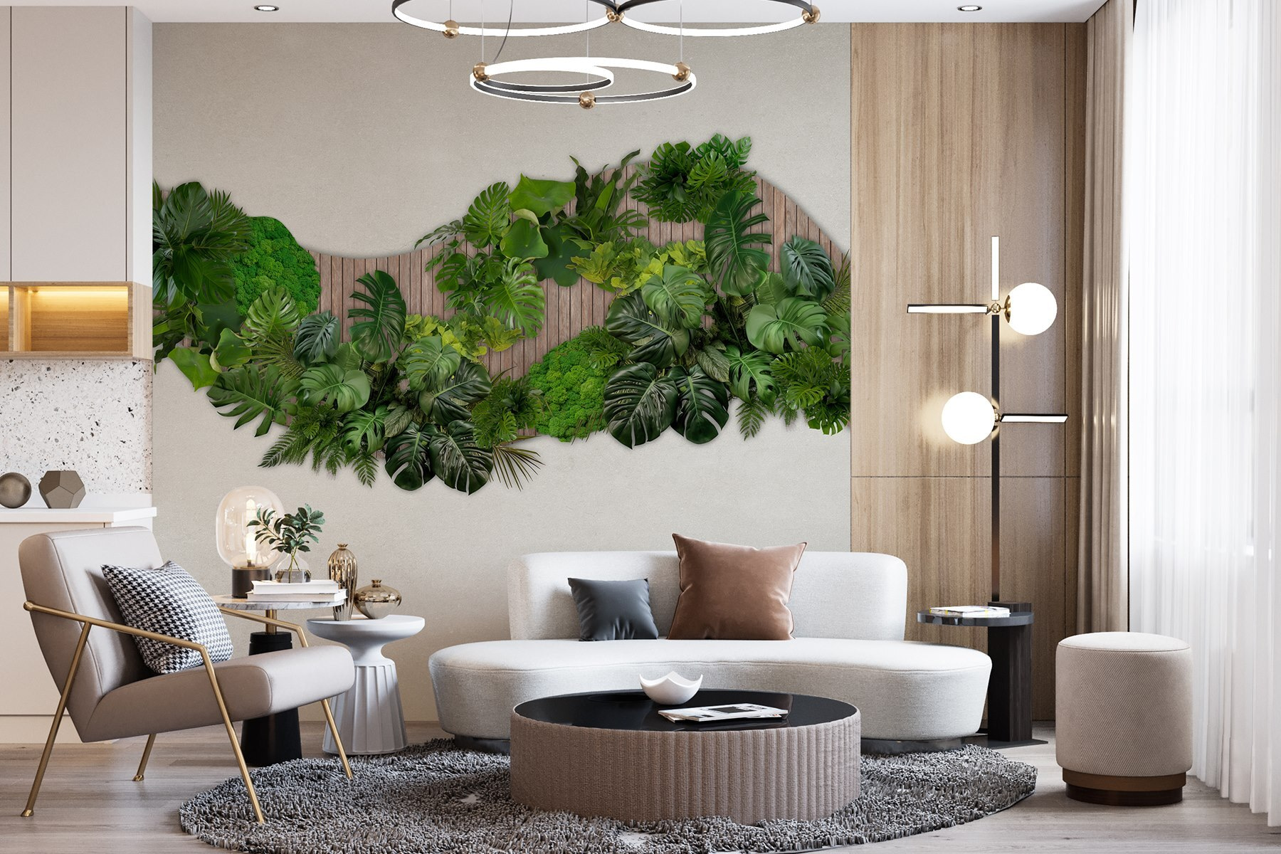 Verander je ruimte in een weelderige oase met deze prachtige muurschildering met een levendige groep groene bladeren op een rustiek houten oppervlak. Stel je voor dat je een kamer binnenloopt die aanvoelt als een buitenparadijs – je zou zelfs vogels kunnen horen fluiten (oké, misschien alleen in je hoofd). Deze muurschildering brengt de tropische sfeer naar je muren, en wie houdt er niet van een beetje op de natuur geïnspireerde decoratie?