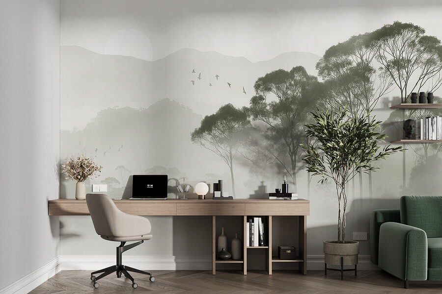 Transformeer je ruimte met de betoverende muurschildering “Birds Flying Over Trees”. Stel je voor dat je een mistige ochtend binnenstapt, waar zachte groentinten spelen met zacht grijs en een serene achtergrond creëren voor dromerige momenten. Het is alsof de natuur een geheim heeft ingefluisterd in je kamer! Stel je voor: je wordt wakker en begroet door die zwevende vogels, alsof ze je uitnodigen om met hen mee te vliegen. Deze muurschildering past moeiteloos bij de gezellige inrichting, waardoor het een perfecte ontsnapping is zonder het huis te verlaten. Bovendien, wie houdt er niet van de rustgevende sfeer van een bos, toch? Of het nu warmte toevoegt aan een leeshoek of een saaie gang tot leven brengt, het zal zeker een beetje reislust opwekken. Ga je gang, laat je liefde voor de natuur tot uitdrukking komen op je muren!