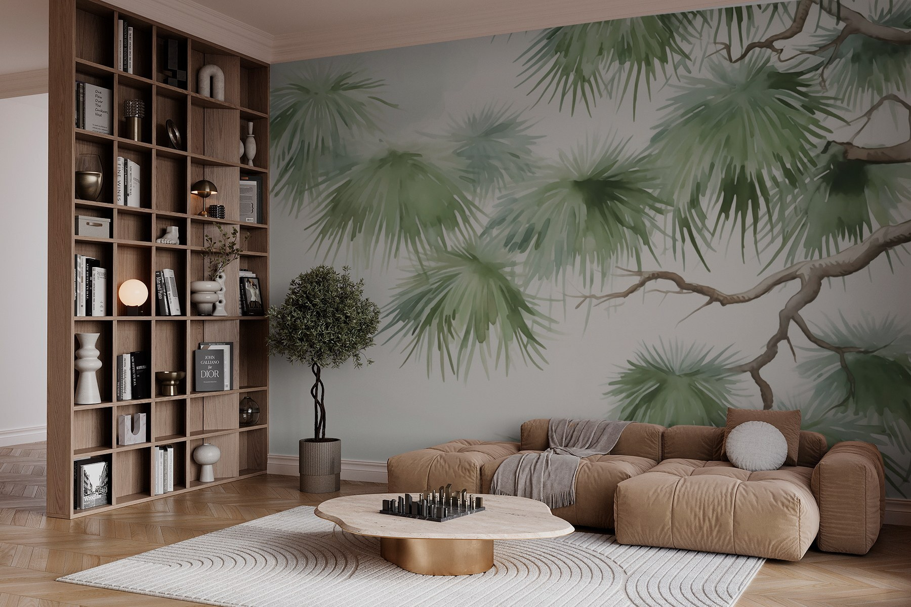 Verander elke kamer in een serene schuilplaats met deze betoverende muurschildering met een weelderige boom. Het is alsof je een stukje natuur in huis haalt – zonder de insecten en af en toe het gezang van een vogel, als je geluk hebt! Stel je voor dat je wakker wordt omringd door de zachte tinten groen en een zacht briesje dat door de bladeren ruist. Deze muurschildering ziet er niet alleen cool uit, maar geeft een rustgevende sfeer aan je ruimte die zelfs een maandag een rustig gevoel kan geven. Perfect voor woonkamers, slaapkamers of elk ander hoekje dat wel een frisse neus kan gebruiken. Wie wist dat decoratie kon aanvoelen als een mini-vakantie?