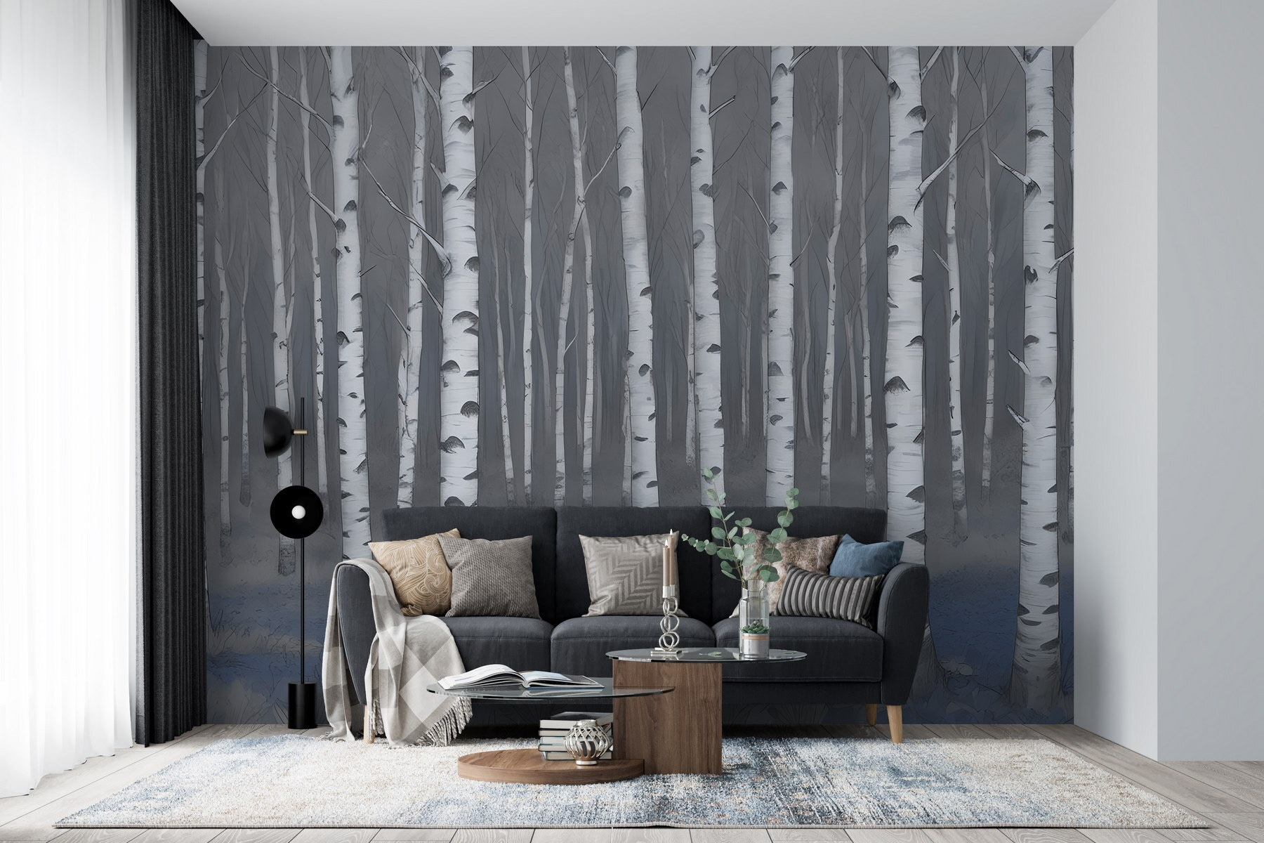 Verander elke kamer in een sereen toevluchtsoord met deze prachtige muurschildering van berkenbomen. Stel je eens voor dat je wakker wordt met een grijsgetint bos in je woonkamer, dat bij elke blik fluisteringen van de natuur oproept. Het is alsof je een geheim toevluchtsoord in het bos hebt zonder de insecten – wie kan dat verslaan? De sierlijke stammen staan hoog en creëren een gevoel van diepte dat je naar binnen trekt, bijna uitnodigend voor een wandeling. Deze muurschildering is perfect voor gezellige leeshoekjes of minimalistische kantoren en kan van elke gewone dag een magische ontsnapping maken. Zet er een kopje thee bij en laat de rustgevende vibraties hun werk doen!