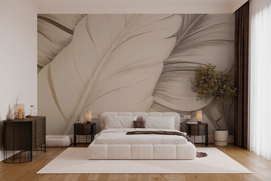 Stel je voor dat je een sereen toevluchtsoord binnenstapt waar zachte, delicate veren je omarmen als een warme omhelzing. Deze muurschildering vangt de zachte schoonheid van de natuur in een kalmerend palet, waardoor het perfect is voor elke kamer die een vleugje rust nodig heeft. Stel je voor dat je onder dit elegante ontwerp ligt te loungen, misschien thee drinkt of in een goed boek duikt, terwijl je de lichtheid van de verenpatronen voelt. Het is alsof je een stukje tropen in huis hebt. Verander je ruimte in een rustgevend toevluchtsoord dat niet alleen een lust voor het oog is, maar dat ook doet dromen van het paradijs. Wie zou dat niet willen?