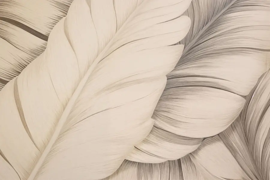 Stel je voor dat je een sereen toevluchtsoord binnenstapt waar zachte, delicate veren je omarmen als een warme omhelzing. Deze muurschildering vangt de zachte schoonheid van de natuur in een kalmerend palet, waardoor het perfect is voor elke kamer die een vleugje rust nodig heeft. Stel je voor dat je onder dit elegante ontwerp ligt te loungen, misschien thee drinkt of in een goed boek duikt, terwijl je de lichtheid van de verenpatronen voelt. Het is alsof je een stukje tropen in huis hebt. Verander je ruimte in een rustgevend toevluchtsoord dat niet alleen een lust voor het oog is, maar dat ook doet dromen van het paradijs. Wie zou dat niet willen?
