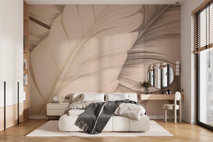 Stel je voor dat je een sereen toevluchtsoord binnenstapt waar zachte, delicate veren je omarmen als een warme omhelzing. Deze muurschildering vangt de zachte schoonheid van de natuur in een kalmerend palet, waardoor het perfect is voor elke kamer die een vleugje rust nodig heeft. Stel je voor dat je onder dit elegante ontwerp ligt te loungen, misschien thee drinkt of in een goed boek duikt, terwijl je de lichtheid van de verenpatronen voelt. Het is alsof je een stukje tropen in huis hebt. Verander je ruimte in een rustgevend toevluchtsoord dat niet alleen een lust voor het oog is, maar dat ook doet dromen van het paradijs. Wie zou dat niet willen?