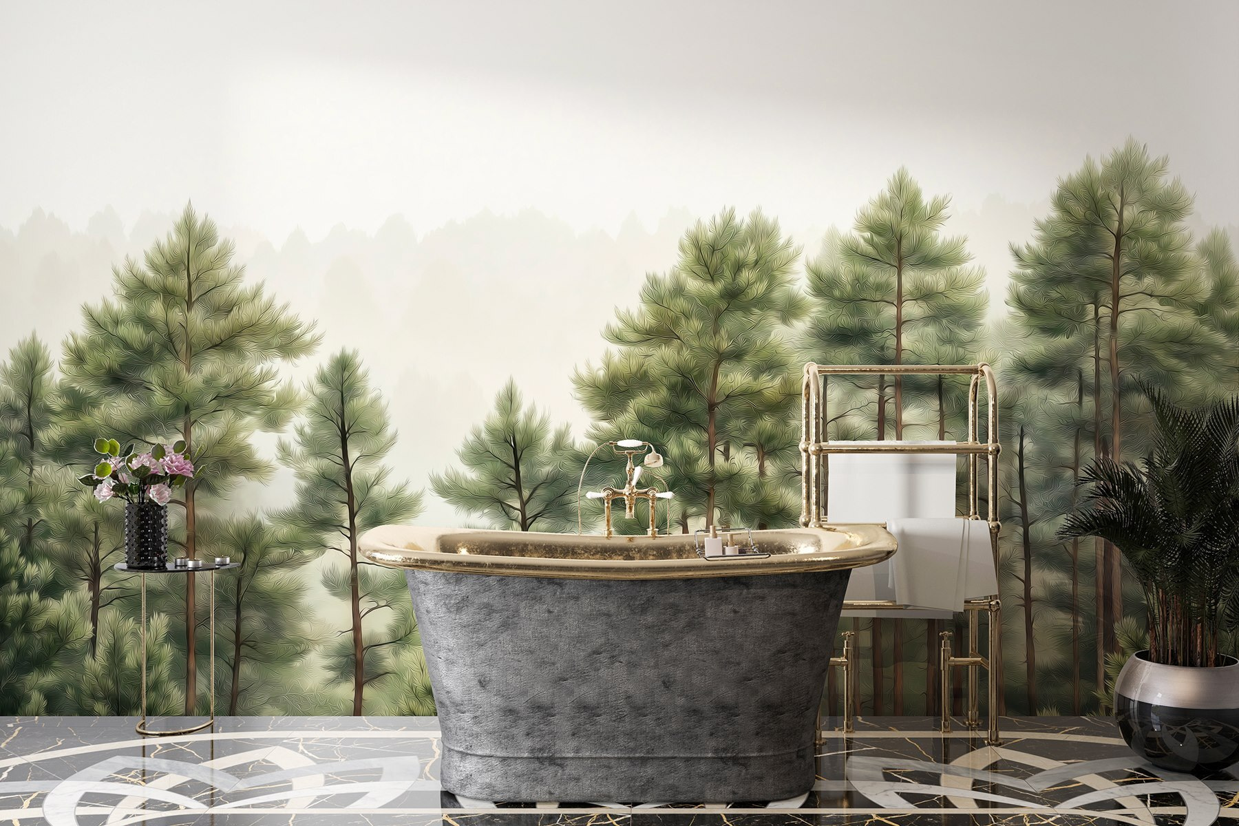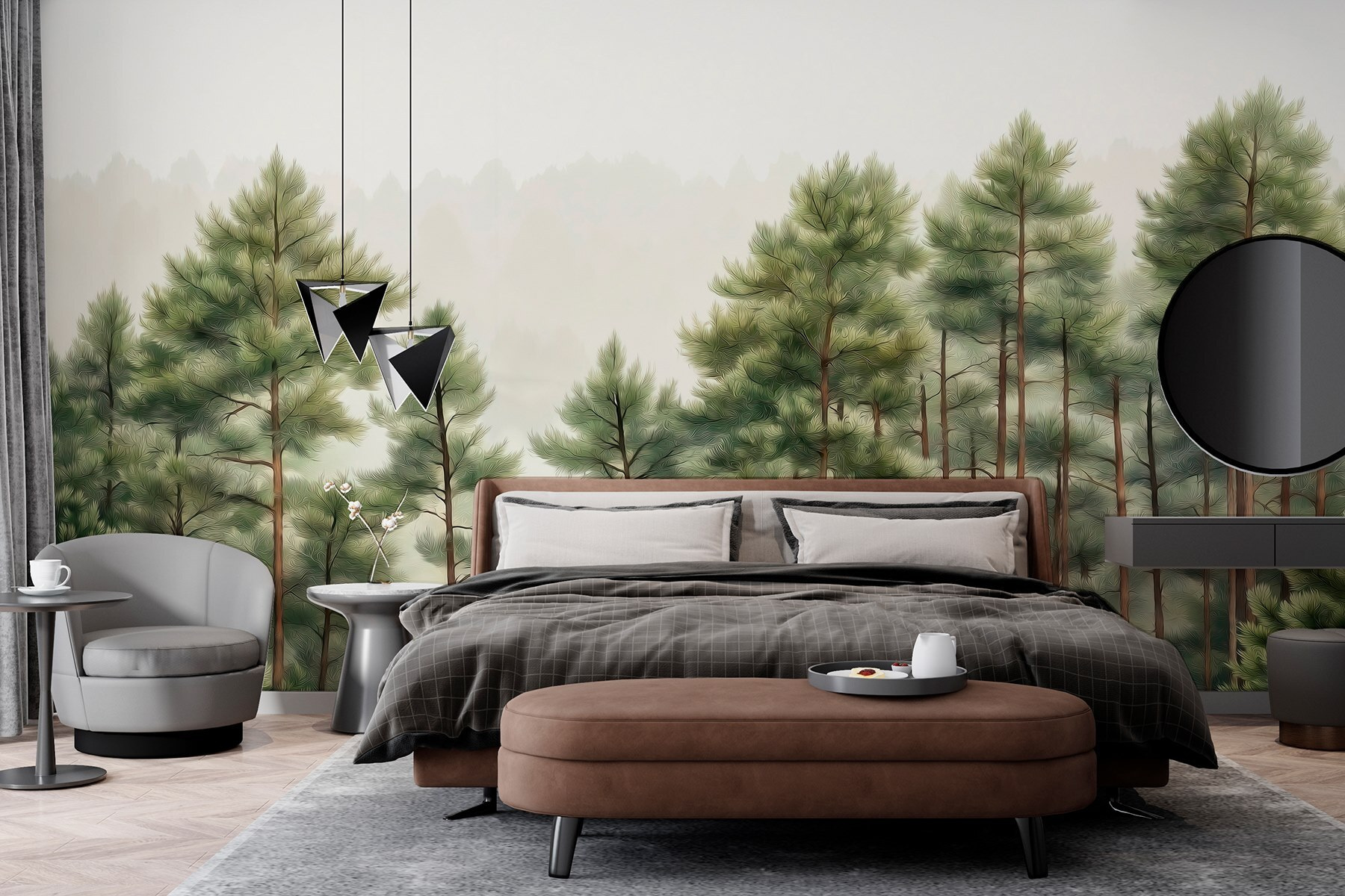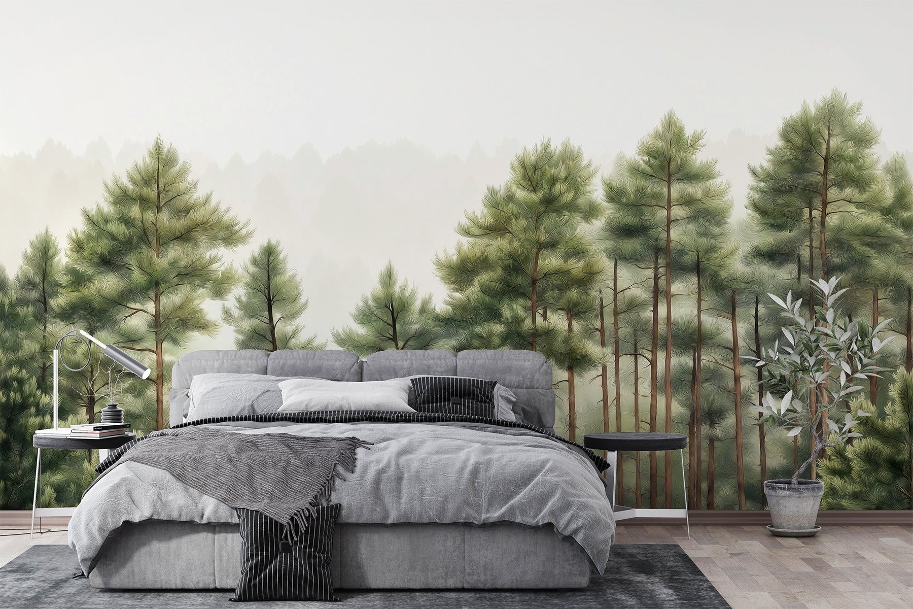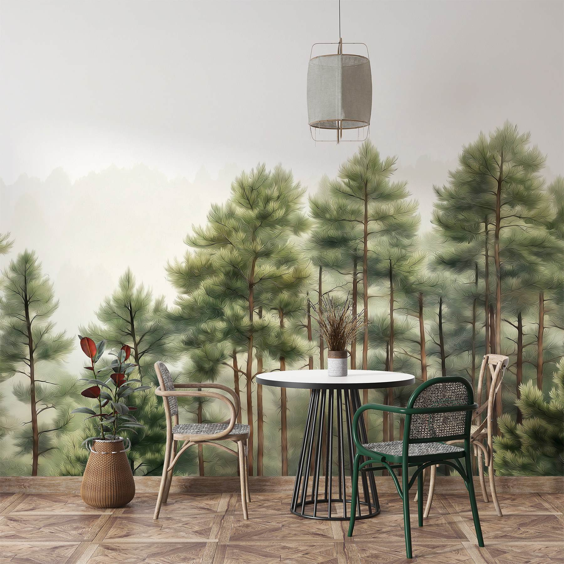 Transformeer je ruimte met deze prachtige muurschildering, “Groep bomen in een bos”. Stel je voor: elke ochtend wakker worden met een sereen bos in je eigen huis. Stel je de kalmerende effecten voor als een knusse knuffel van de natuur zelf. Het zachte groen en de zachte mist trekken je naar binnen en nodigen uit tot een gevoel van vrede en rust. Het is alsof je je eigen stukje buiten hebt, zonder insecten en modder. Perfect voor het creëren van een gezellig leeshoekje of een verfrissende accentmuur. Wie heeft er vakantie nodig als je de schoonheid van het bos binnen kunt halen? Voeg een vleugje van de charme van de natuur toe en maak je klaar om heerlijk te dagdromen.