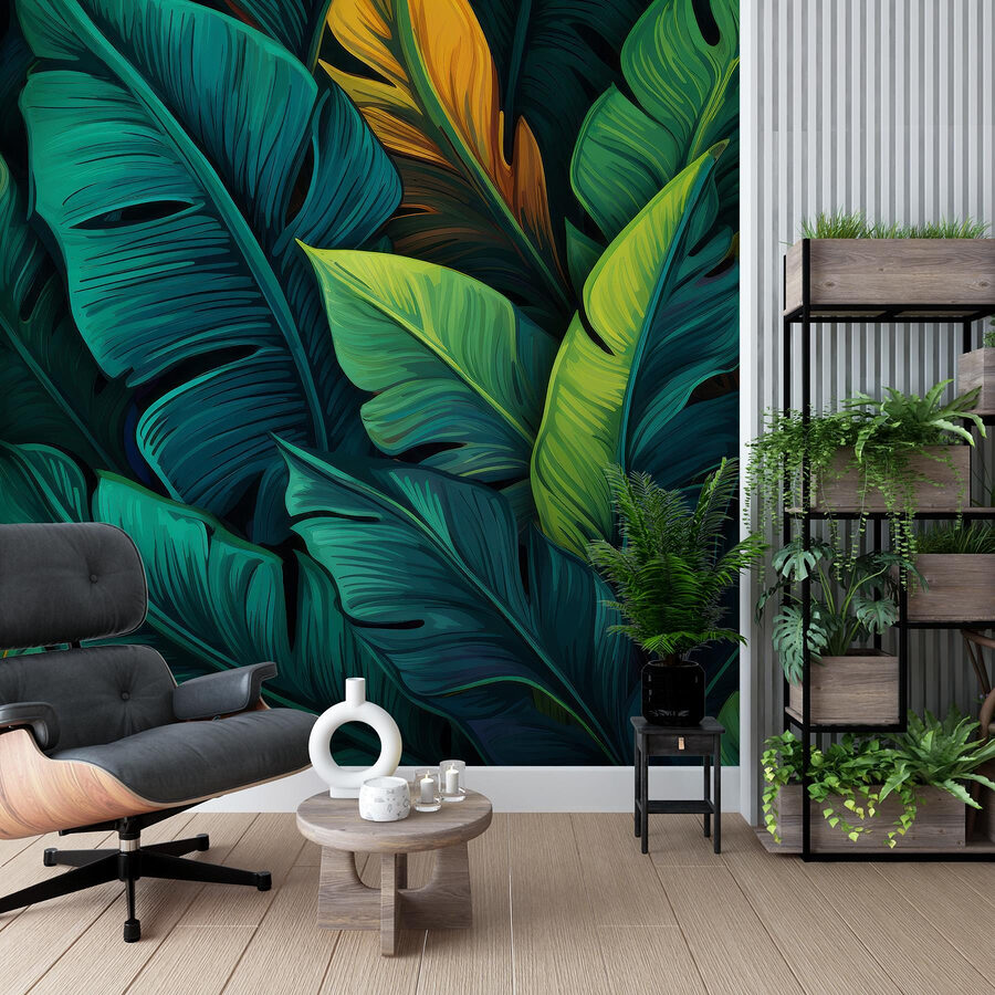 Stel je voor dat je een kamer binnenstapt die aanvoelt als een tropische oase – zonder dat je daarvoor een vliegticket nodig hebt. Deze muurschildering ‘Vibrant Foliage’ omhult je met weelderig groen en zonnig geel, waardoor je humeur meteen een boost krijgt. Het is alsof je een stukje natuur in je woonruimte hebt, maar dan zonder vervelende insecten. Stel je voor dat je een ontspannen brunch met vrienden organiseert, omringd door dit levendige landschap – dat zal zeker tot gesprekken leiden. Leun achterover en laat de betoverende bladeren je meenemen naar een dromerige ontsnapping. Perfect voor elke muur die een vleugje leven nodig heeft! Wie had gedacht dat gebladerte zo verfrissend kon zijn?