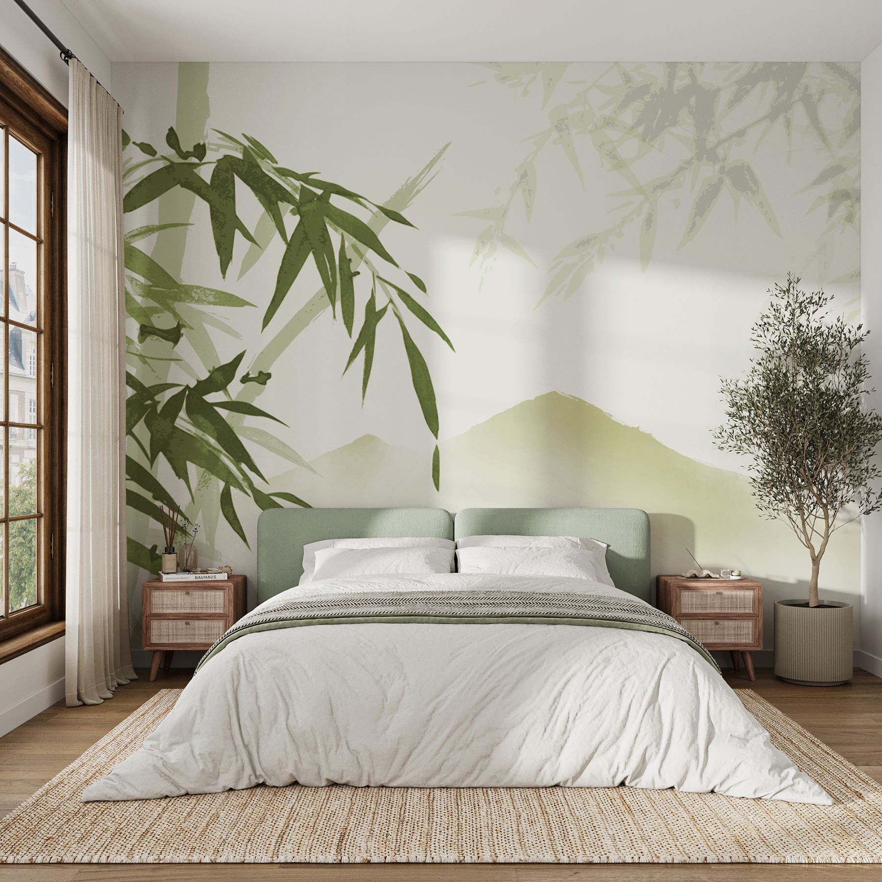 Verander een saaie muur in een serene ontsnapping met de muurschildering ‘Calming Bamboo and Mountain Landscape’. Stel je voor dat je je kamer binnenloopt en meteen een golf van rust over je heen voelt komen. Door de zachte groentinten en rustige afbeeldingen van bamboe kun je bijna het ruisen van de bladeren in een winderig bos horen. Stel je voor dat je thee drinkt terwijl je naar die bergen staart – ah, er gaat niets boven een minivakantie thuis! Het is perfect om een gezellig hoekje te creëren of een vleugje natuur toe te voegen aan elke ruimte. Ideaal voor die momenten waarop je even moet pauzeren en ademhalen. Dus waarom zou je niet een beetje natuur binnenhalen?