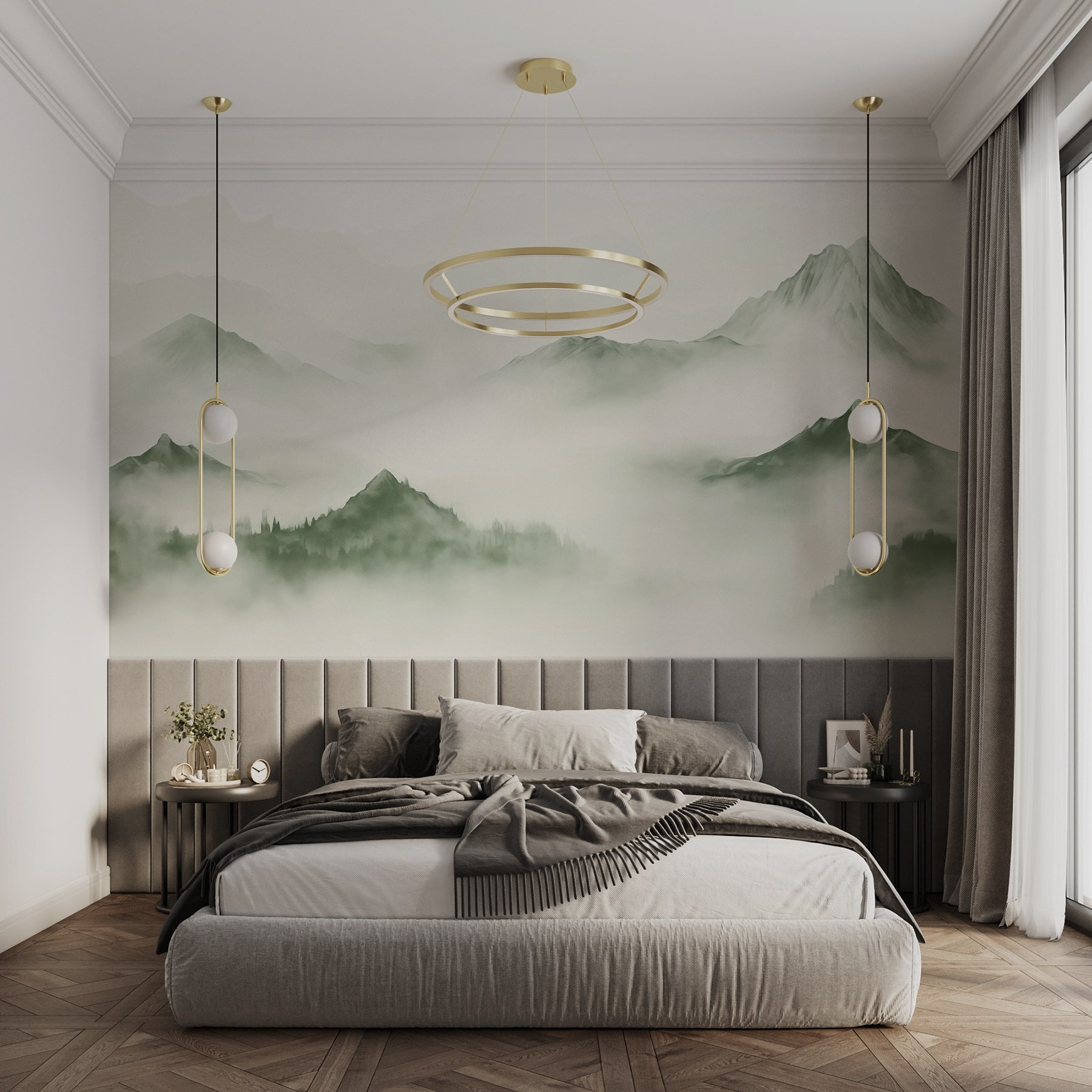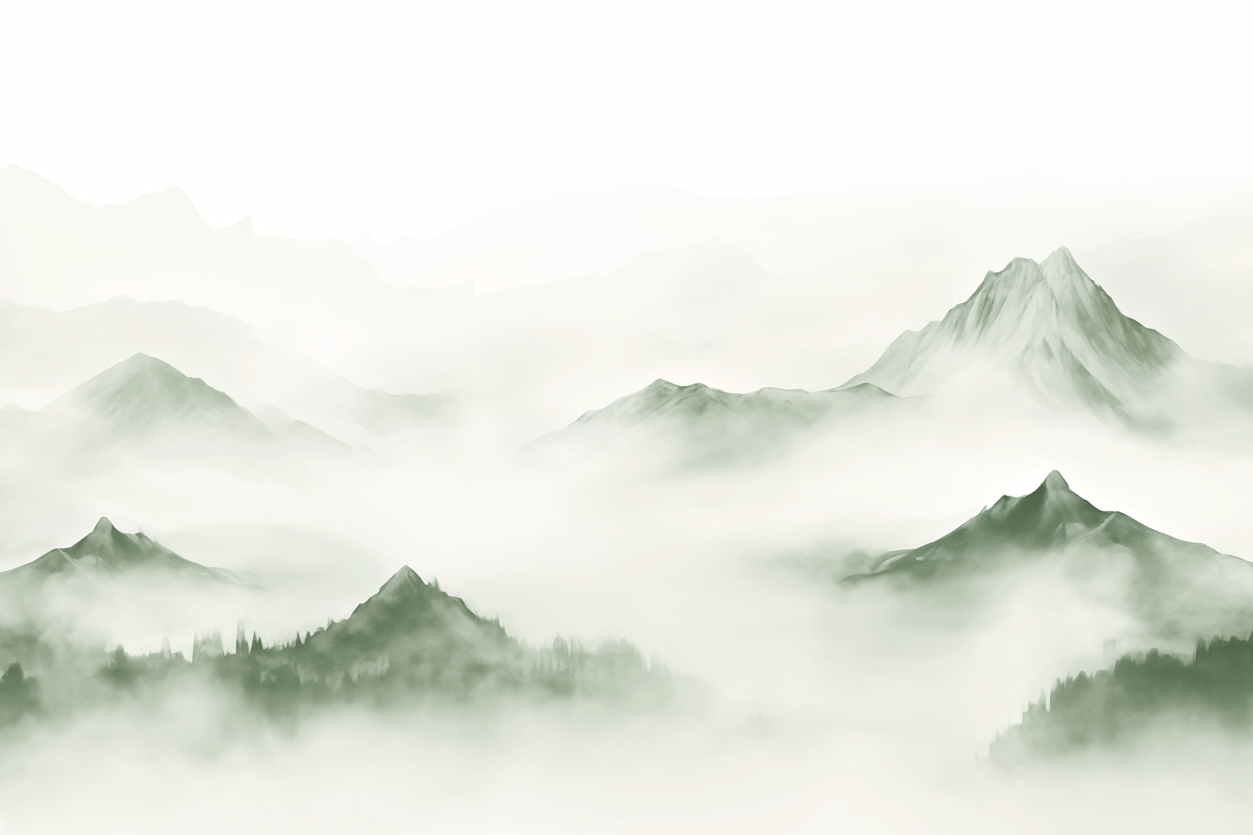 Verander uw muren in een serene ontsnapping met de muurschildering “Foggy Mountain Landscape”. Stel u voor dat u een kamer binnenloopt en het gevoel hebt dat u in een vredige, mistige bergmorgen bent beland. De zachte groentinten en wazige contouren van de bergtoppen creëren een gevoel van rust, perfect om te ontspannen na een lange dag. Het is bijna alsof de bergen geheimen fluisteren en u uitnodigen om diep adem te halen en te ontspannen. Vrienden zouden zelfs kunnen denken dat je een verborgen hut in het bos hebt! Deze muurschildering is niet alleen een decoratie; hij voegt een vleugje natuurlijke rust toe aan het dagelijks leven en brengt de vrije natuur naar je gezellige ruimte. Het is dromerig, het is rustgevend – wie zou dat niet willen? Of het nu in de woonkamer of in je thuiskantoor is, het zal zeker gesprekken en bewondering uitlokken.