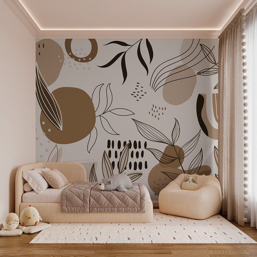 Transformeer elke ruimte met deze prachtige muurschildering met een speels patroon van bladeren en bloemen. Stel je voor dat je een kamer binnenstapt waar de natuur tot leven komt – zonder dat je een tuin buiten nodig hebt. Dit ontwerp verweeft aardetinten en leuke vormen en creëert zo een sfeer die zowel ontspannen als verfrissend is. Perfect voor gezellige hoekjes of levendige woonkamers, het nodigt uit tot een gevoel van rust en creatieve inspiratie. Stel je voor dat je koffie drinkt omringd door deze vrolijke motieven, die je doen glimlachen en goede gesprekken opwekken. Wie wist dat muren zoveel energie konden geven? Een vleugje natuur binnenshuis, en dat allemaal zonder dat je water hoeft te geven!