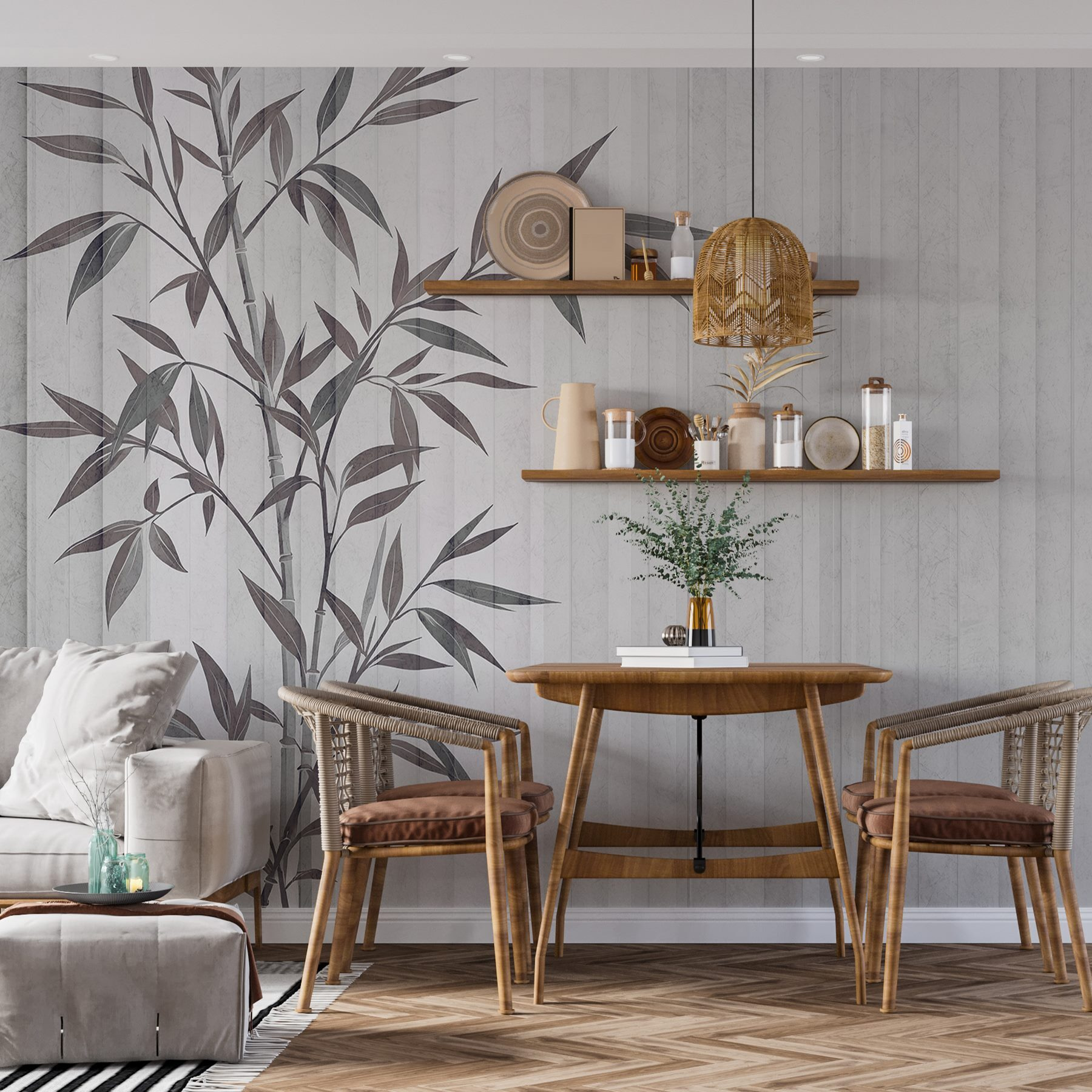 Bekijk precies hoe je ruimte eruit zal zien met nieuw behang voordat je tot aankoop overgaat. Professionele visualisatie door deskundige ontwerpers zonder kosten of aankoopverplichting.