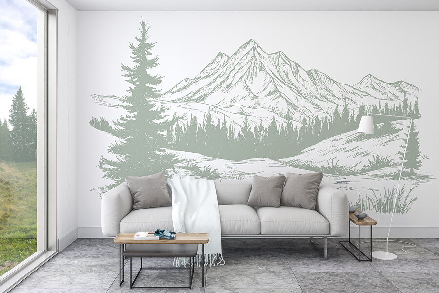 Tover elke kamer om in een sereen toevluchtsoord met deze prachtige muurschildering van bergketens. Stel je voor: een gezellige ochtend met een dampende kop koffie en dit kunstwerk dat je meeneemt in de rustige omhelzing van de natuur. De zachte groene tinten zijn als een omhelzing van de natuur en geven die vier muren een frisse uitstraling. Het is perfect voor een woonkamer, thuiskantoor of zelfs dat hoekje waar dromen ontstaan. Stel je de gesprekken voor die hierdoor op gang komen of hoe het je laat voelen op een dinsdag wanneer de koffie het gewoon niet doet. Deze muurschildering? Het is meer dan alleen decor; het is een hele stemming.