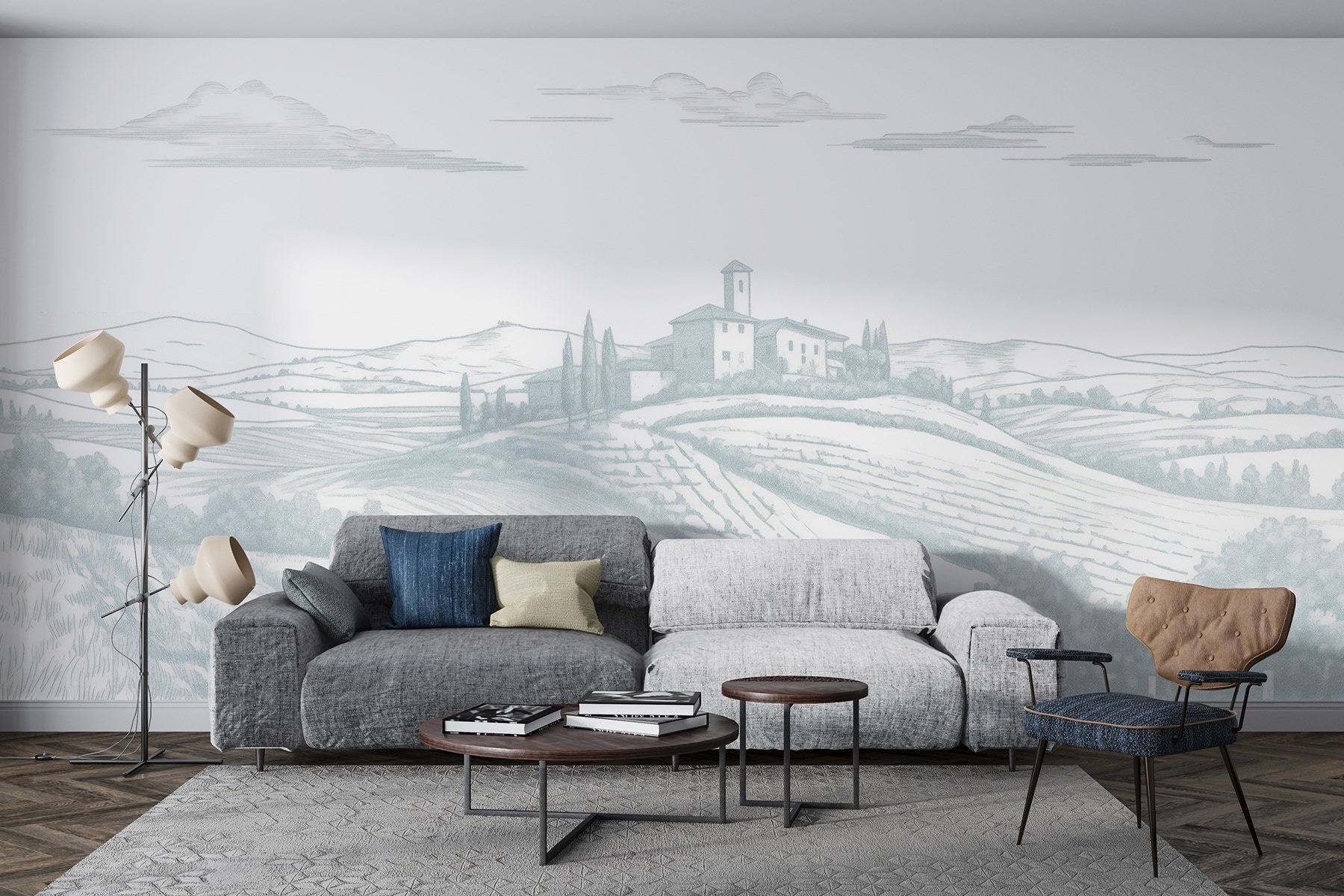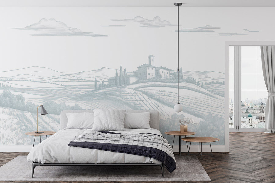 Transformeer elke ruimte met deze fascinerende muurschildering met een sereen landschap bezaaid met een charmant huis en sierlijke bomen. Stel je voor dat je een kamer binnenloopt en je meteen vervoerd voelt naar glooiende heuvels en zonovergoten weiden. De zachte contouren roepen een gevoel van rust op, waardoor het perfect is voor een gezellige leeshoek of zelfs een levendige werkplek. Stel je voor dat je koffie drinkt terwijl je naar je nieuwe uitzicht staart en de rust inademt. Het is alsof je thuis een mini-uitstapje maakt! Deze muurschildering decoreert niet alleen, maar creëert een sfeer die ontspanning uitstraalt.