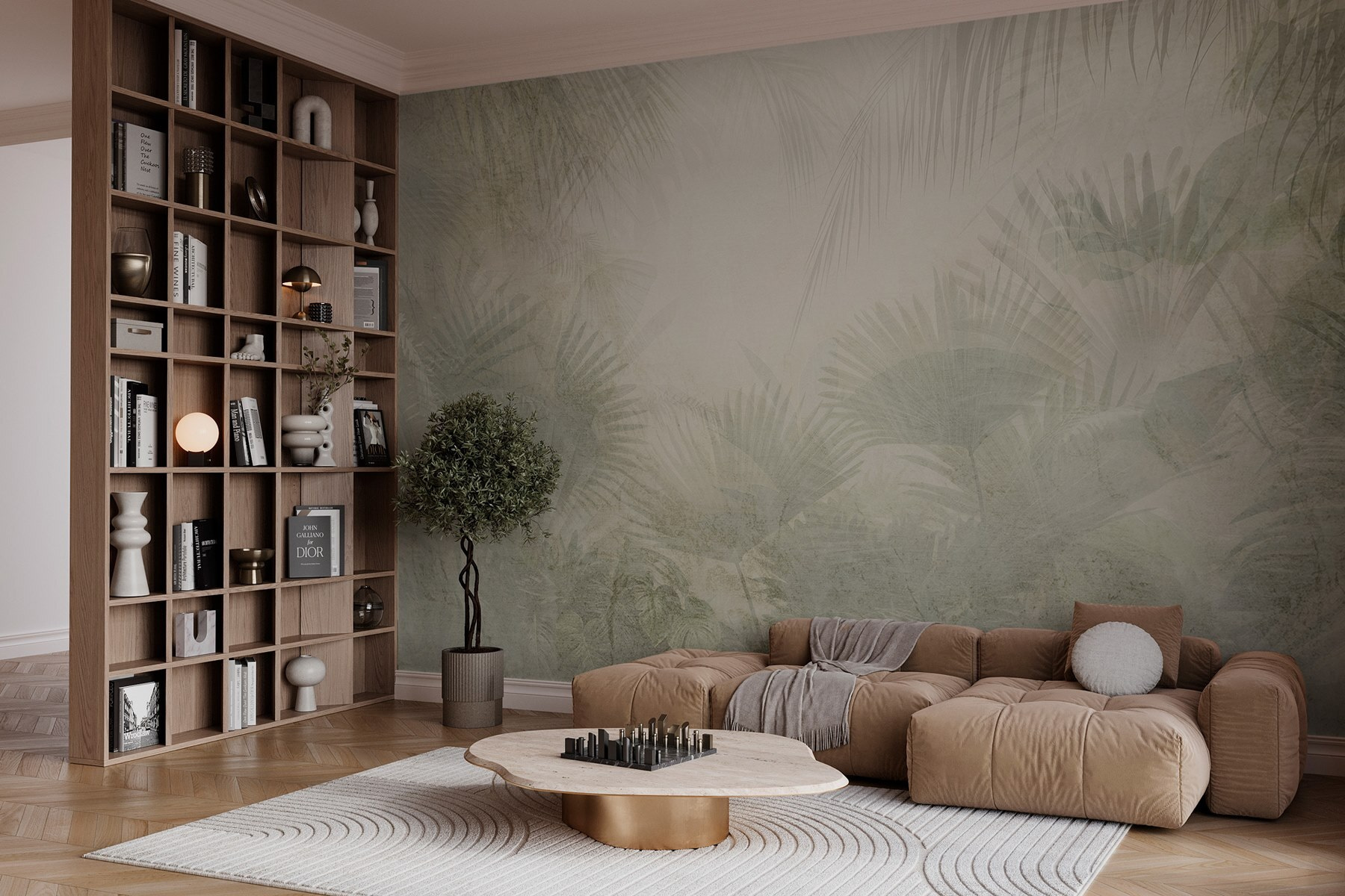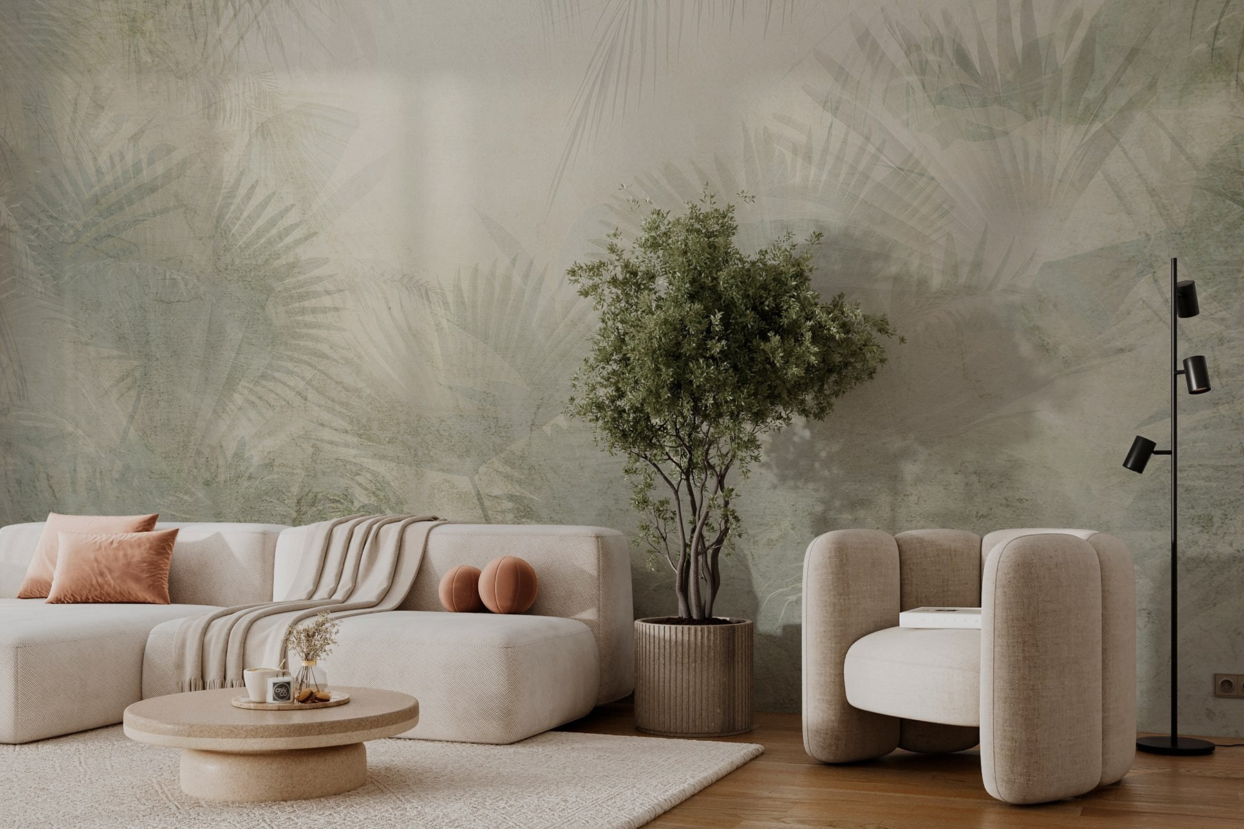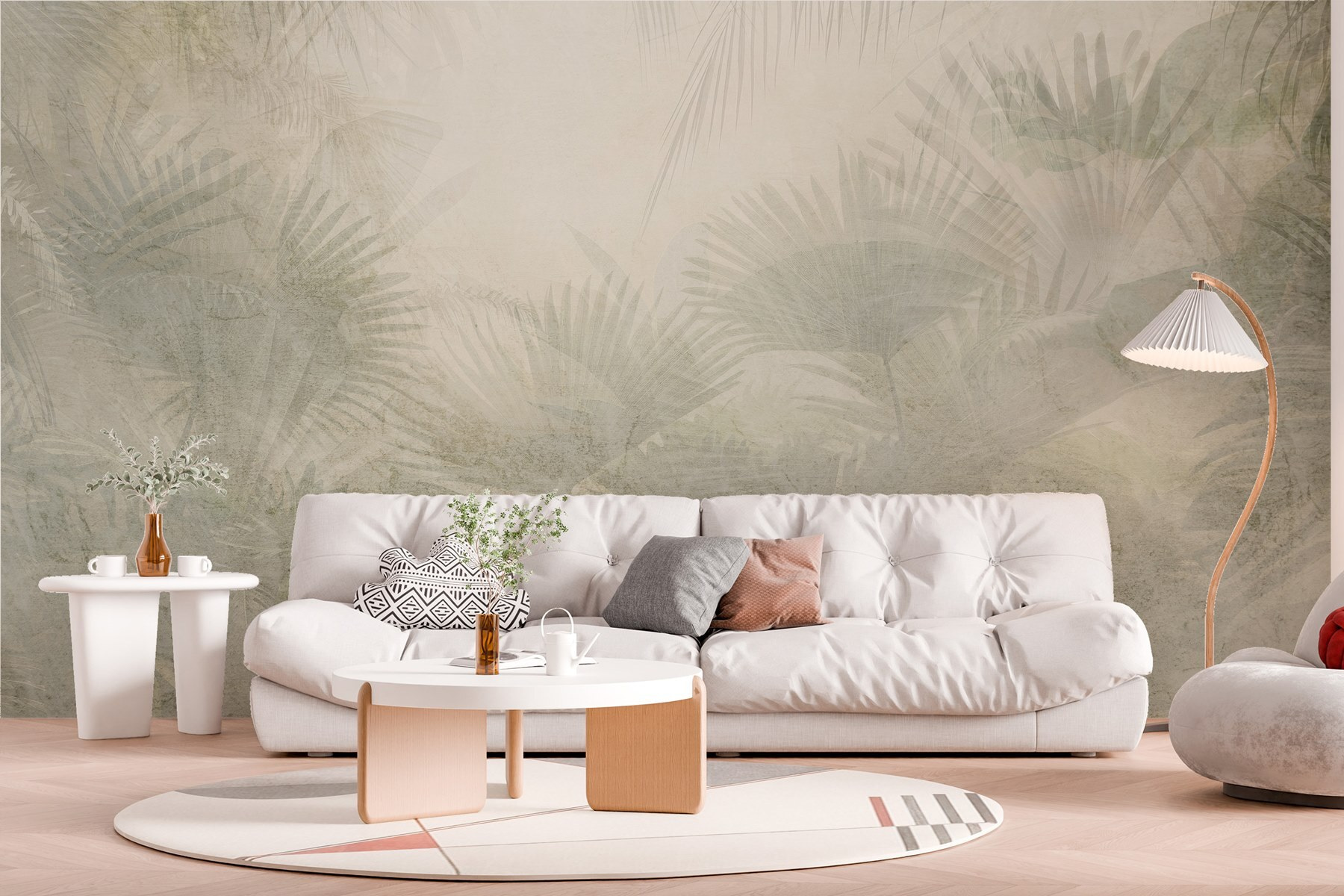 Tover elke ruimte om in een sereen toevluchtsoord met deze prachtige muurschildering met zachte palmbladeren tegen een delicate witte achtergrond. Stel je voor dat je in een rustgevende oase stapt telkens als je de kamer binnenloopt. Het is een stukje tropen thuis – geen paspoort nodig! Perfect voor een gezellige leeshoek of een levendige woonkamer. Stel je voor: loungen met een koel drankje, omringd door de rustgevende vibes van de natuur. De subtiele details creëren een zachte diepte, waardoor het aanvoelt als een frisse wind. Het is als een warme knuffel van Moeder Natuur!