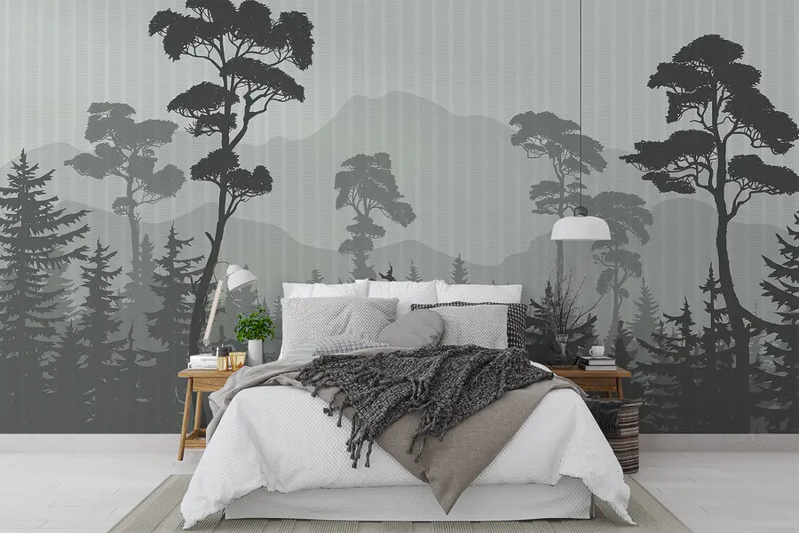 Verander elke kamer in een serene ontsnapping met deze prachtige muurschildering met een dromerige bosgezicht. Stel je de torenhoge bomen en majestueuze bergen voor die een rustgevende sfeer uitstralen, alsof je vanuit je woonkamer een natuurverblijf binnenstapt. Het is alsof je een gezellige hut in het bos hebt zonder het gedoe van inpakken. De koele tinten geven een chique, moderne touch, waardoor het perfect is voor een stijlvol kantoor of een ontspannend leeshoekje. Vrienden zullen zeker opmerken hoe verfrissend de sfeer is. Wie wil er nu niet een beetje magie van het bos in huis? Stel je voor dat je koffie drinkt terwijl je naar die bomen staart – instant rust!