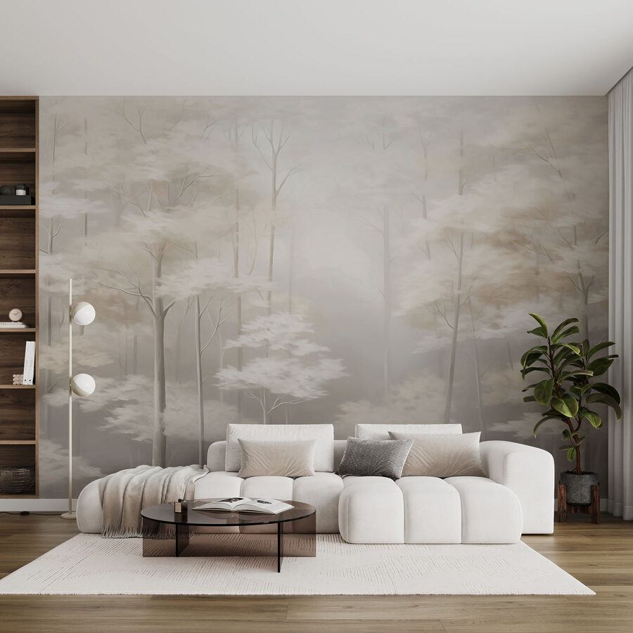 Stel je voor dat je een dromerig mistig bos binnenstapt, waar zachte tinten en zachte bomen je uitnodigen om rond te dwalen. Deze muurschildering is als een frisse wind voor je kamer – een perfecte mix van de rust van de natuur en moderne kunst. Stel je gezellige avonden voor in een kamer die is getransformeerd door deze serene achtergrond. Het is niet zomaar een muurschildering; het is een stemming. Of je nu koffie drinkt of aan je laatste project werkt, dit rustgevende tafereel belooft je geest te kalmeren en inspiratie op te wekken. Bovendien is het een geweldige gespreksstarter voor al je gasten. Wie wil er nu niet thuis over de schoonheid van de natuur praten?
