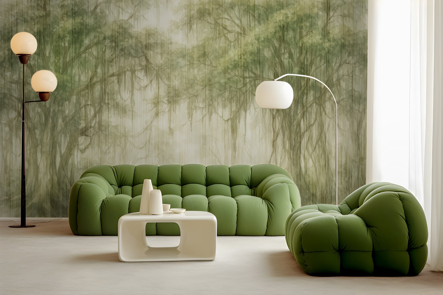 Dompel je ruimte onder in rust met deze betoverende muurschildering van een mistig bos. Het is alsof je in een droom stapt waar bomen geheimen fluisteren en de lucht dik is van mysterie. Stel je voor dat je ‘s ochtends aan je koffie nipt, omringd door de zachte tinten groen en bruin, terwijl het zonlicht door de mistige takken schijnt. Deze muurschildering voegt een vleugje rust van de natuur toe, waardoor zelfs de drukste dagen een beetje langzamer aanvoelen. Perfect voor een gezellige woonkamer of een serene slaapkamer, het nodigt uit tot dagdromen en blijft perfect onbewogen. Wie wil er nu geen serene vakantie thuis?