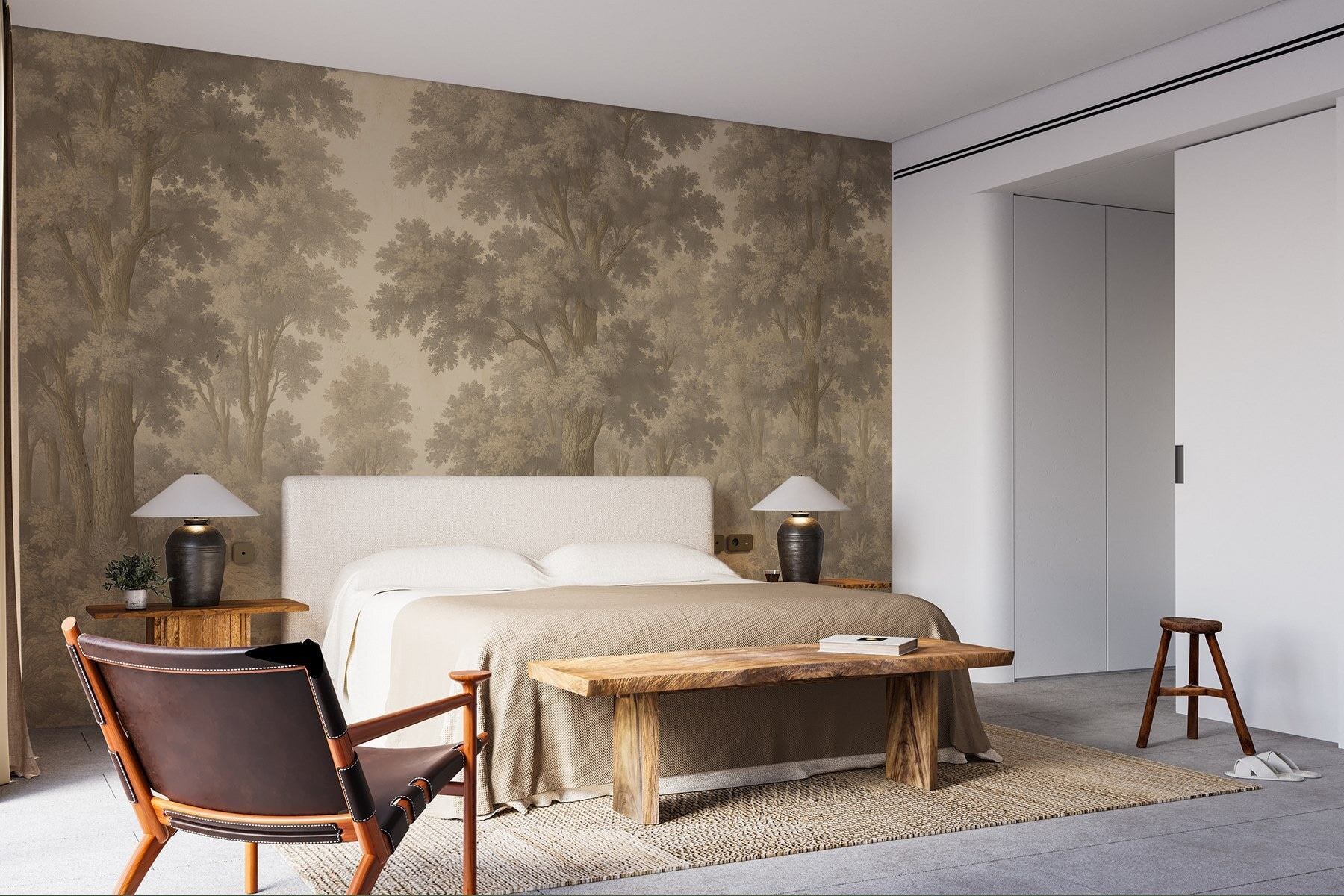 Verander elke kamer in een serene ontsnapping met deze prachtige muurschildering, “Landschap met bomen en een rivier”. Stel je voor dat je een ruimte binnenloopt waar weelderig, verbleekt groen je omringt en een zachte rivier in de verte glinstert. Het is alsof je een stukje natuur in huis hebt. Of het nu voor een gezellig leeshoekje is of een frisse wind in je woonkamer, deze muurschildering geeft een rustgevende sfeer. Zie jezelf al liggen, misschien met een kopje thee, starend naar dit rustige tafereel. Het is niet alleen decor; het is een stemmingsmaker, een dagelijkse herinnering aan vredige wandelingen door het bos. De zachte kleuren nodigen uit tot ontspanning en wie heeft dat niet nodig?