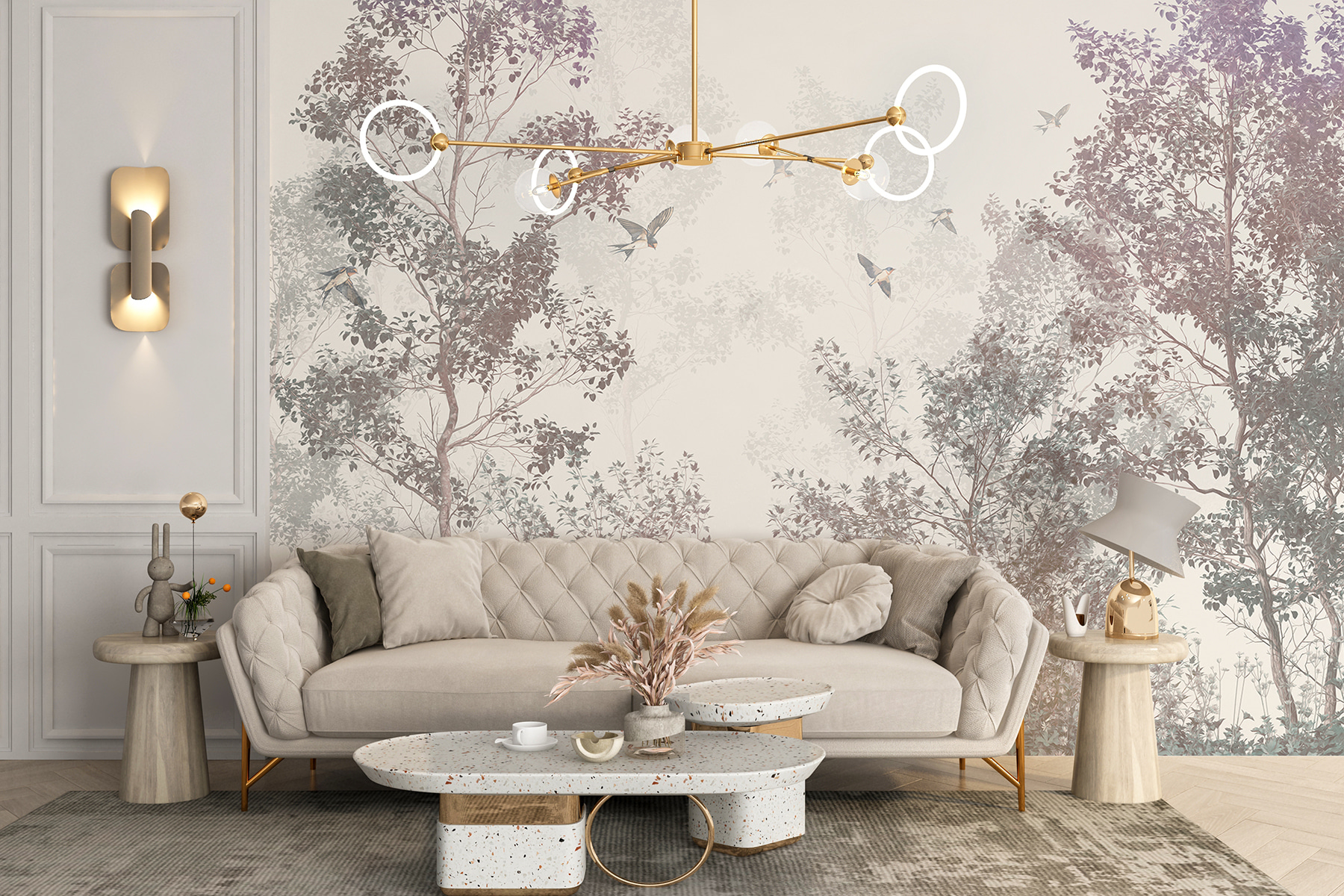 Transformeer elke ruimte met deze fascinerende muurschildering, waar vogels sierlijk door een zachte, dromerige lucht glijden. Stel je eens voor dat je wakker wordt in een kamer vol licht, die meer aanvoelt als een serene ontsnapping naar buiten. De zachte tinten van de natuur wikkelen zich om je heen en creëren een rustige sfeer die perfect is voor luie weekenden of levendige bijeenkomsten. Het is alsof je een miniatuurbos in huis hebt, zonder de insecten – wie heeft die nodig? Deze muurschildering is perfect voor een woonkamer of een gezellig leeshoekje en nodigt uit tot vredige gedachten en dagdromen. Het is niet alleen decor; het is een ervaring!