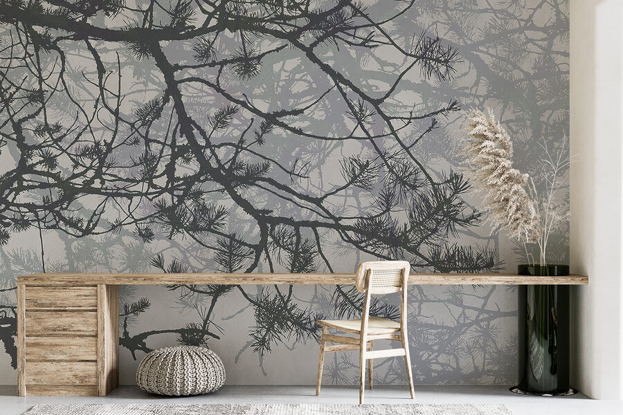 Tover je ruimte om in een sereen toevluchtsoord in de bossen met deze betoverende muurschildering van boomtakken versierd met delicate naalden. Stel je voor dat je elke dag in een gezellige hut stapt, zelfs als je alleen maar in je woonkamer bent. Het zachte spel van schaduwen en licht geeft een rustgevende sfeer, perfect om te ontspannen of te dagdromen over je volgende wandeling. Het is bijna alsof je buiten naar binnen haalt zonder de insecten! Bovendien is het een geweldige manier om gesprekken op gang te brengen over de natuur, bomen en misschien zelfs die ene misgelopen kampeertrip. Omarm het buitengevoel en laat je muur een verhaal vertellen.