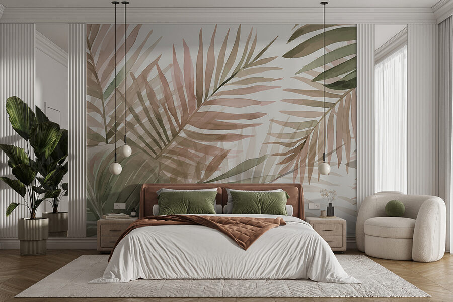 Hallo daar! Stel je voor dat je een kamer binnenloopt die aanvoelt als een exotische ontsnapping. Deze “Fotobehang w08218” is pure rust! Weelderige palmbladeren in zachte, aardse tinten verspreiden zich over je muur, bijna alsof Moeder Natuur zelf je een persoonlijke knuffel geeft. Deze muurschildering is perfect om een beetje van het buitenleven naar binnen te halen en kan elke ruimte omtoveren tot een sereen toevluchtsoord.