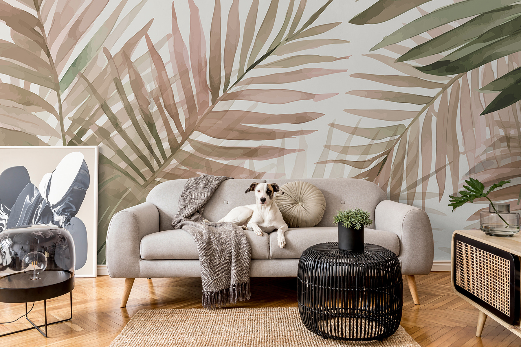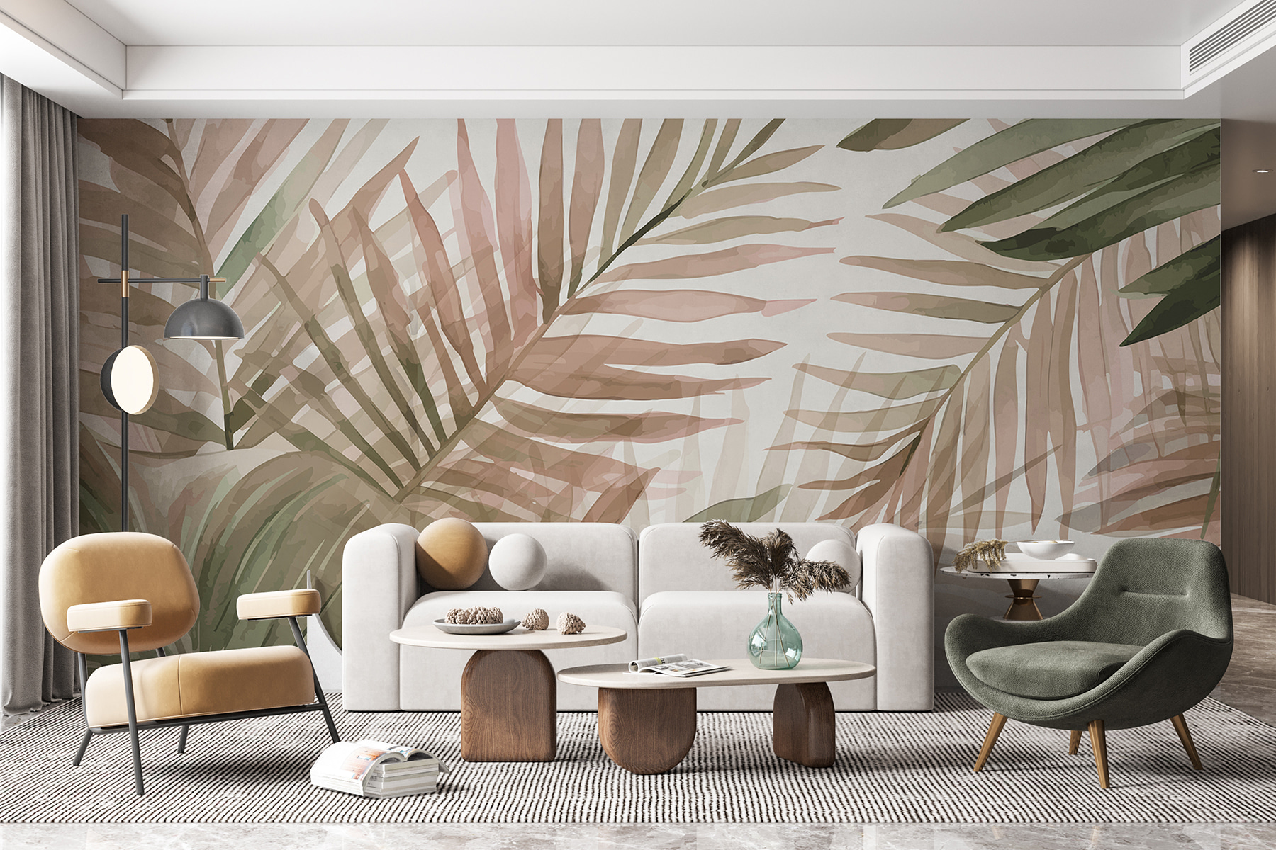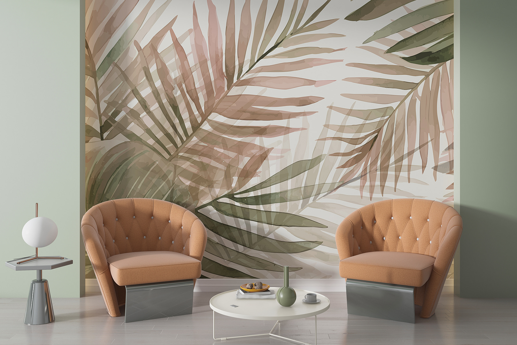 Hallo daar! Stel je voor dat je een kamer binnenloopt die aanvoelt als een exotische ontsnapping. Deze “Fotobehang w08218” is pure rust! Weelderige palmbladeren in zachte, aardse tinten verspreiden zich over je muur, bijna alsof Moeder Natuur zelf je een persoonlijke knuffel geeft. Deze muurschildering is perfect om een beetje van het buitenleven naar binnen te halen en kan elke ruimte omtoveren tot een sereen toevluchtsoord.