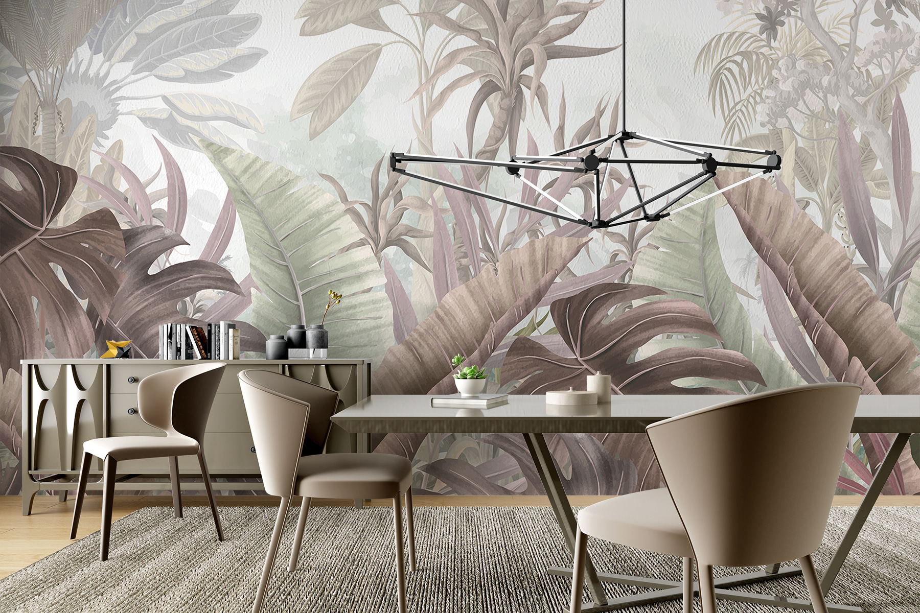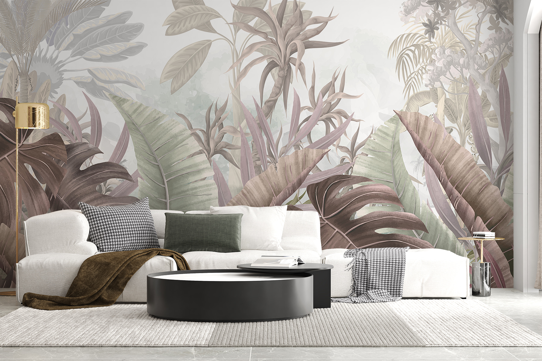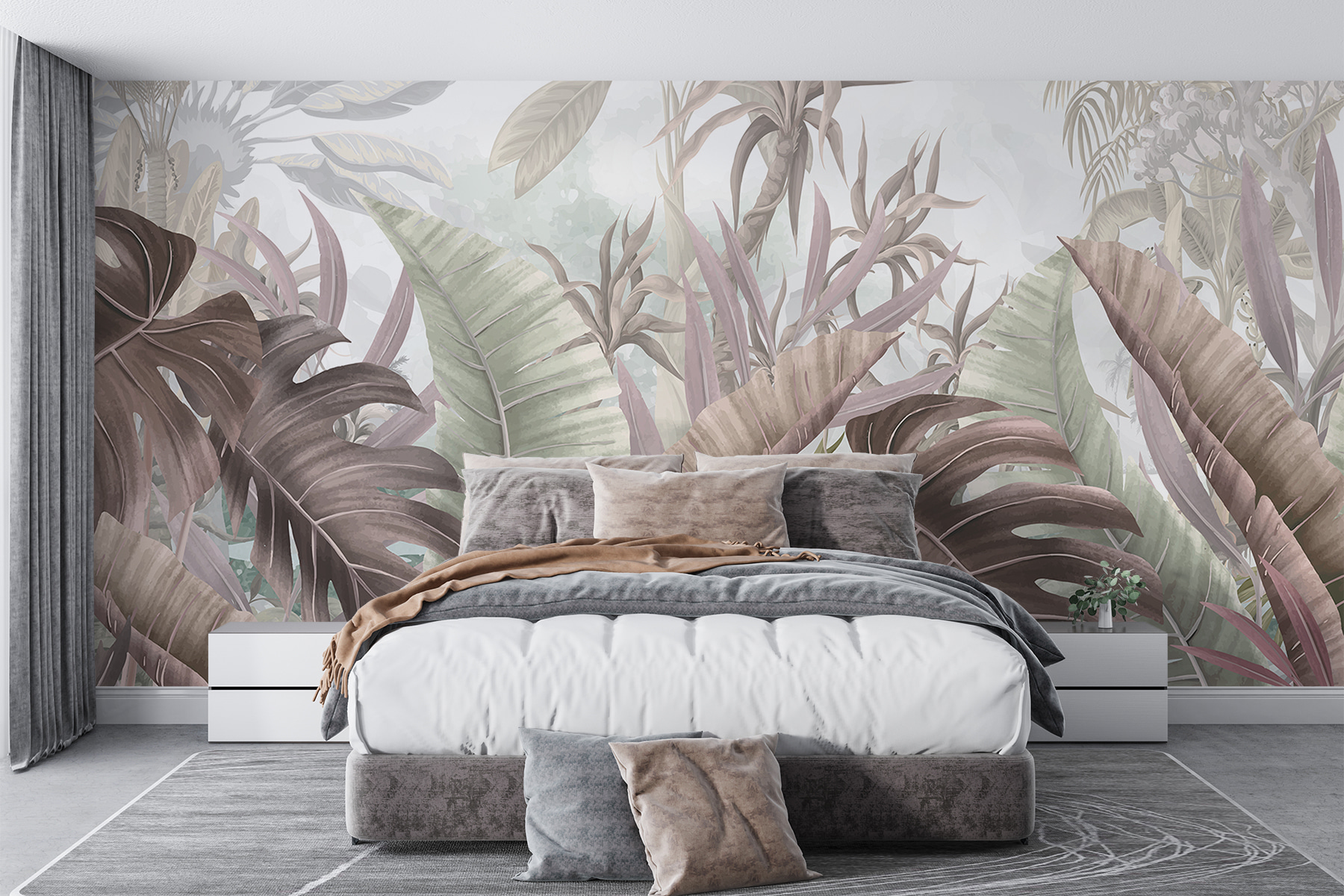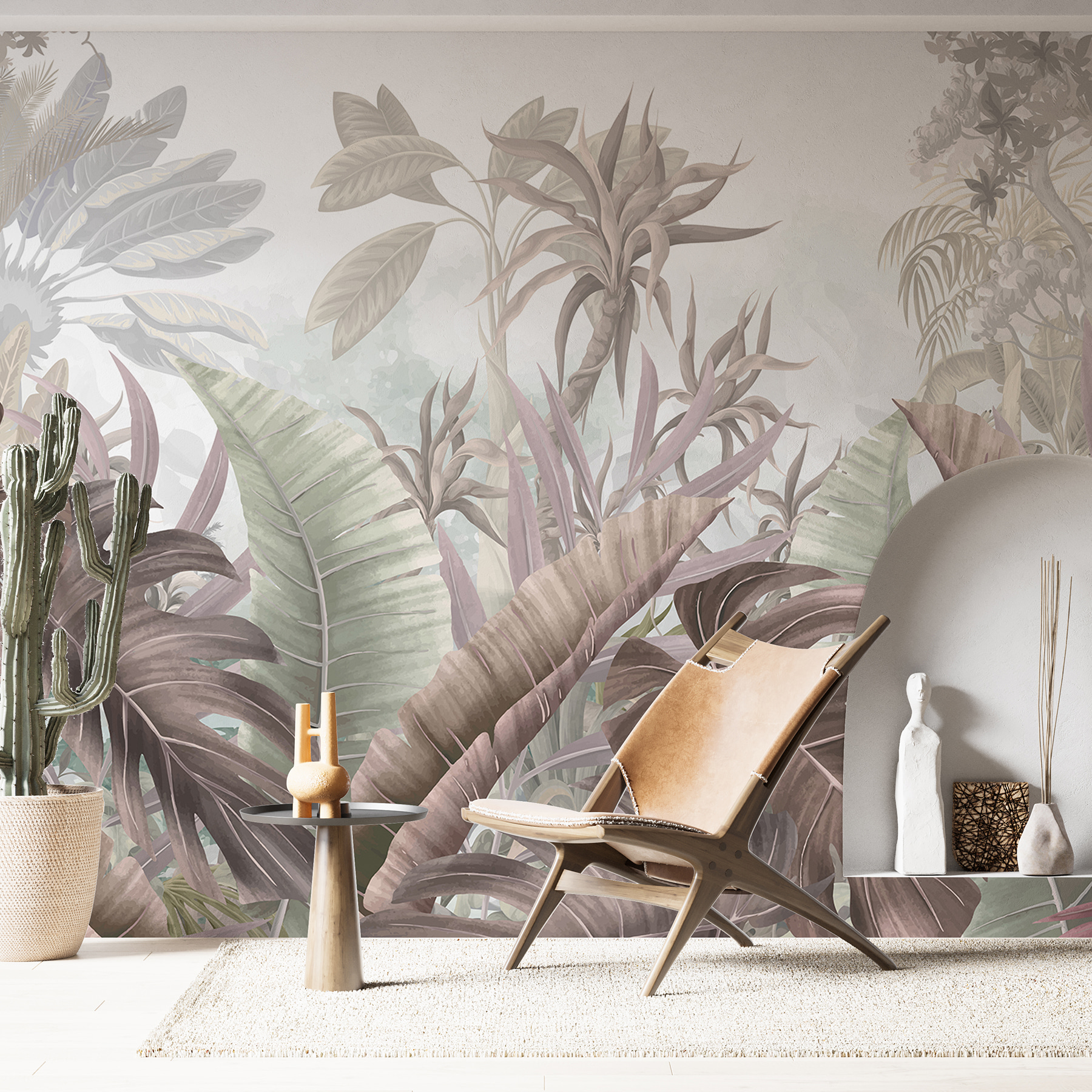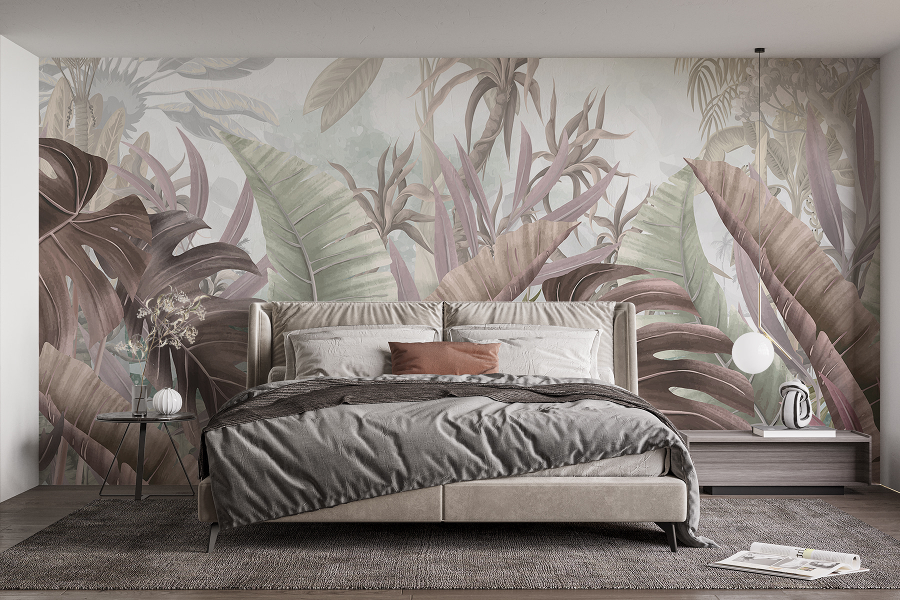 Stap in je eigen tropische paradijs met de muurschildering “Tropical Blend of Nature’s Textures”. Dit levendige ontwerp brengt weelderige palmbladeren en rijke houten texturen naar je woonruimte en hult je in warmte en avontuur. Stel je voor dat je door een jungle loopt – zonder vervelende insecten! Perfect om elke kamer om te toveren in een exotisch uitje, het is een stukje schoonheid van de natuur. Deze muurschildering wordt misschien wel de beste gespreksstarter op je volgende bijeenkomst. Het is niet alleen decor – het is een minivakantie!