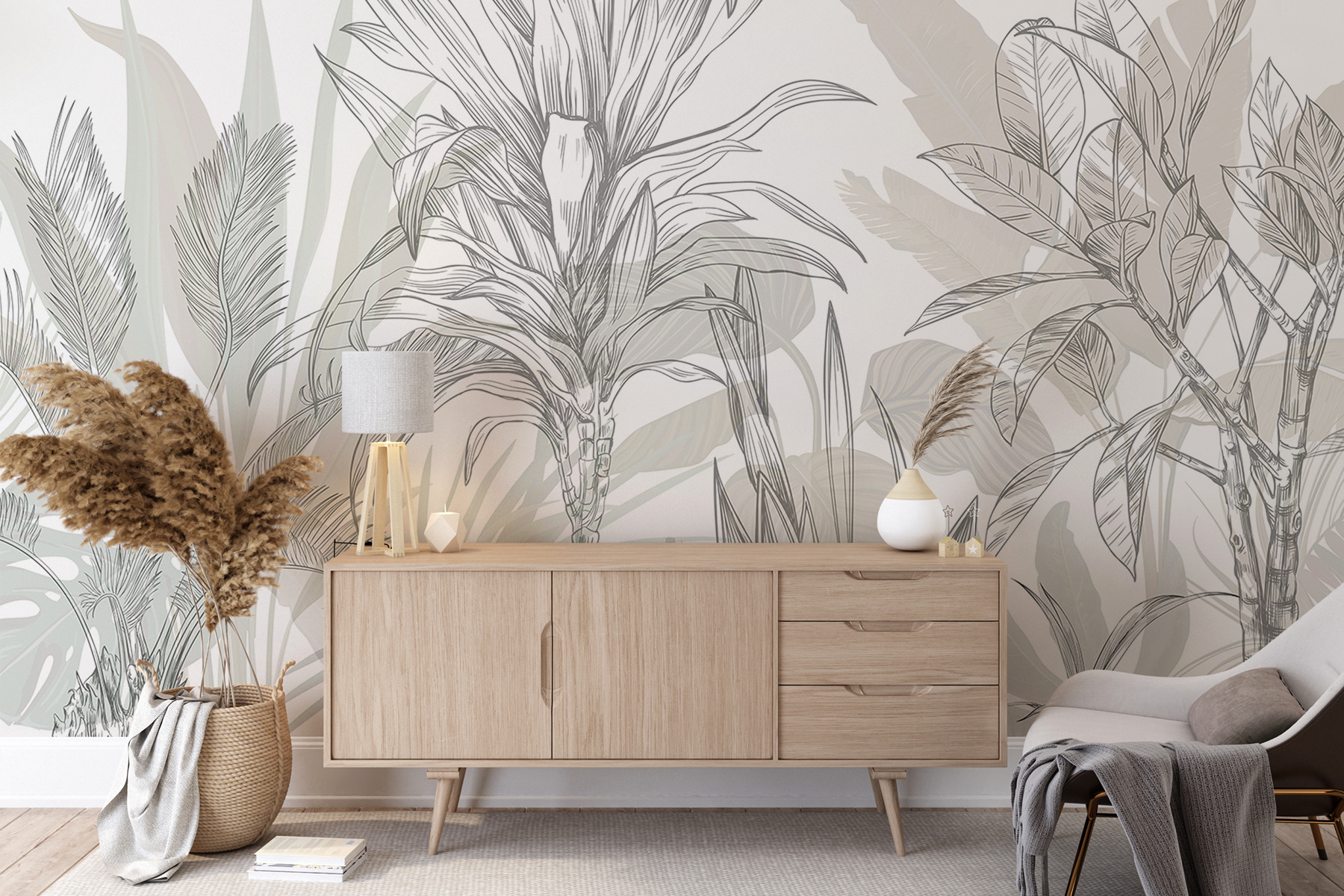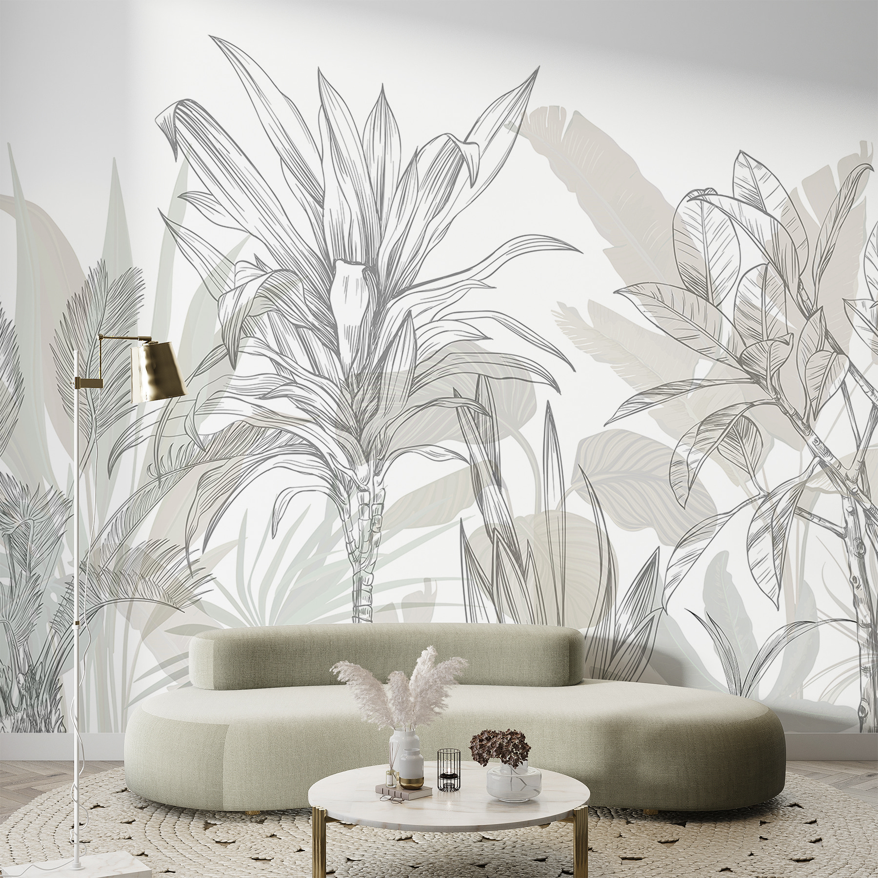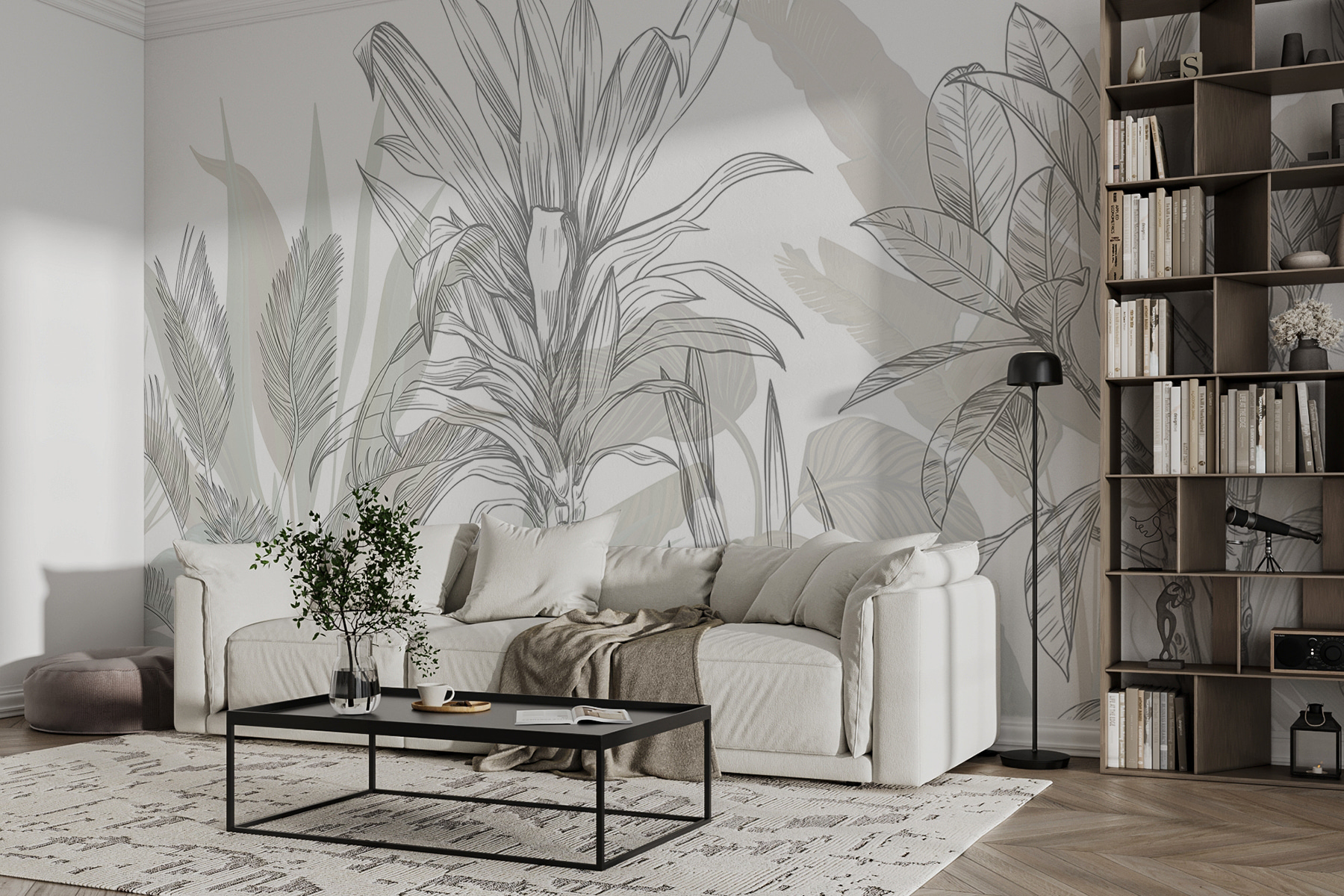 Stel je voor dat je een ruimte binnenstapt waar rust en stijl samenkomen – dat is “Fotobehang Monochrome Botanical Sketches Flourish” voor jou! Deze muurschildering is als een zachte bries van creativiteit die door je kamer waait en blah muren in een tropische ontsnapping verandert. Met zijn eenvoudige, lieflijke schetsen van weelderig gebladerte fluistert hij verhalen van verborgen jungles en zonovergoten bosjes. Perfect voor iedereen die de rust van de natuur wil opsnuiven zonder muggenbulten. Of je nu koffie drinkt of vrienden ontvangt, deze muurschildering brengt een moeiteloze vibe, zoals een coole vriend die altijd weet wat hij moet zeggen.