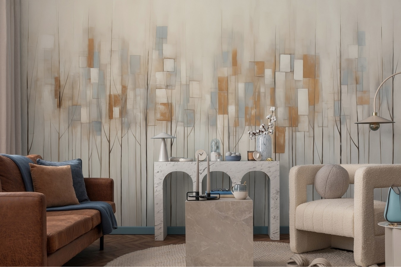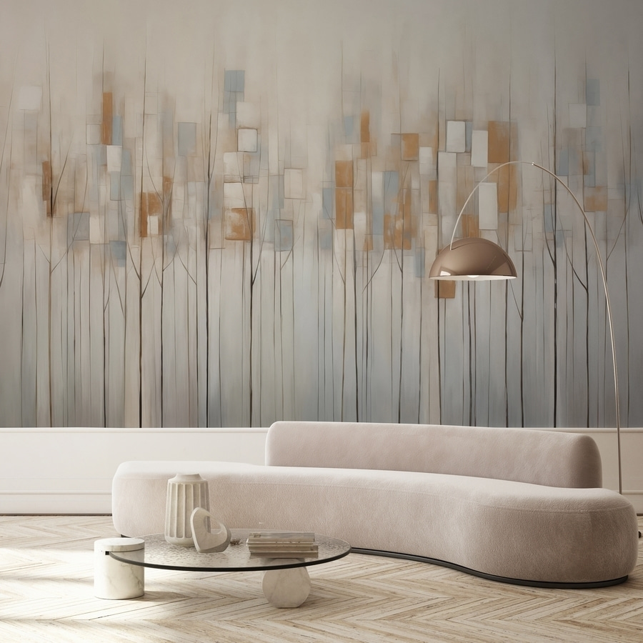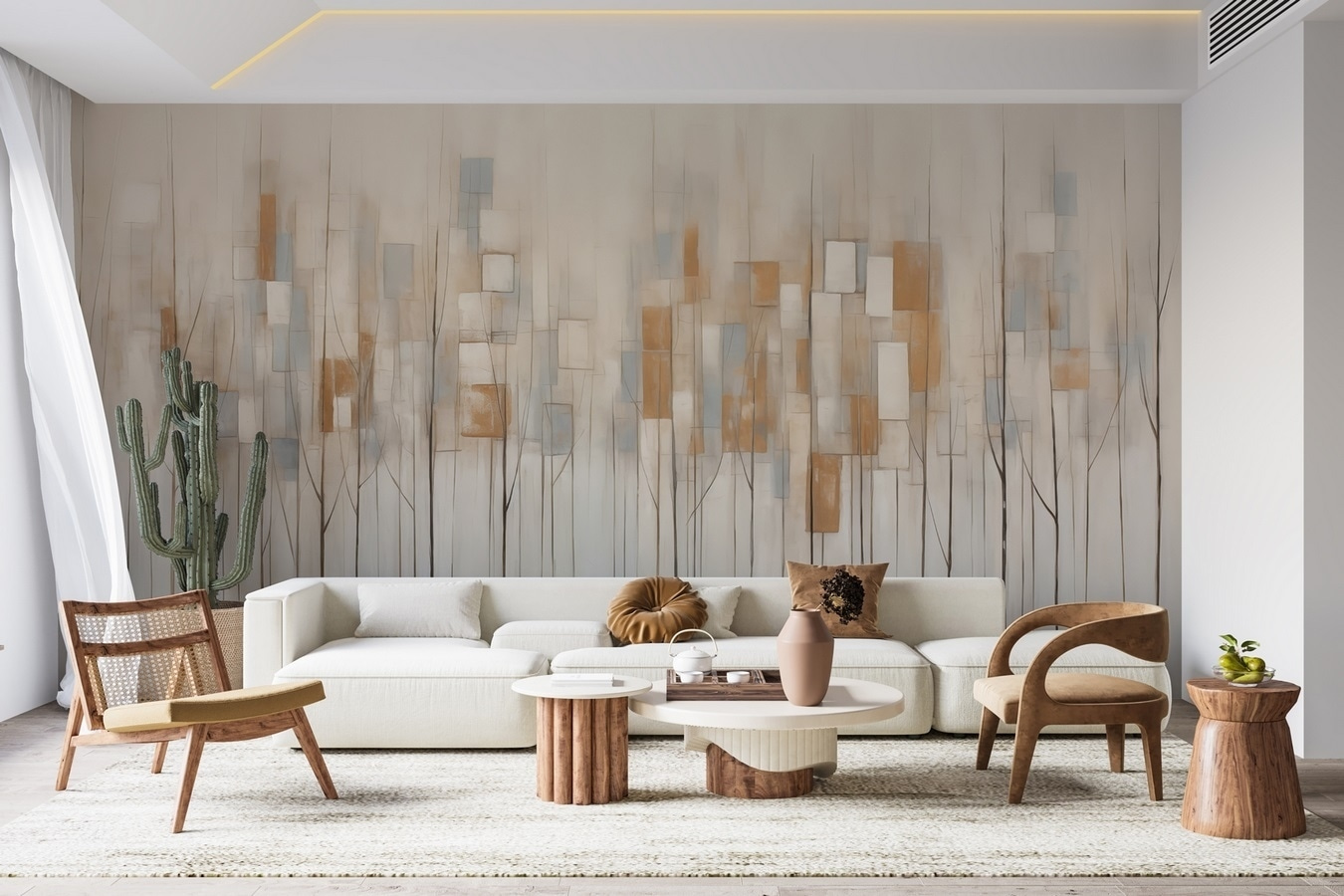 Verander elke kamer in een gezellig toevluchtsoord met deze prachtige muurschildering van bomen en zachte, vierkante vormen. Stel je voor dat je de ruimte binnenloopt en meteen een gevoel van rust ervaart, zoals bij een wandeling in het park, maar dan zonder het lopen zelf. De zachte kleuren passen perfect bij elkaar, brengen een vleugje natuur binnenshuis en blijven toch stijlvol modern. Het geeft vreugde en misschien zelfs een beetje inspiratie voor dat kunstproject waar je aan wilde beginnen. Hang hem op in je woonkamer of thuiskantoor en laat het serene landschap zijn werk doen. Misschien ga je wel dagdromen over luie middagen onder die bomen!