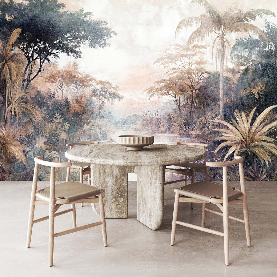 Tover je ruimte om in een sereen uitje met de “Muurschilderingen Rivier met Bomen en Planten”. Stel je voor dat je in een dromerig landschap stapt waar weelderig groen samenkomt met een rustige rivier – wat een sfeer! Deze muurschildering is niet zomaar een muurbekleding; het is alsof je een stukje natuur in huis hebt. De zachte, aardse tinten nodigen uit tot kalmte, waardoor elke luie zondag aanvoelt als een mini-vakantie. Stel je een knus leeshoekje voor met deze muurschildering als achtergrond en een warme kop thee in de hand. Opeens vervagen je zorgen en fluistert de natuur zoete woordjes. Perfect voor wie hunkert naar een tropisch tintje zonder zonnebrand. Het gaat niet alleen om decor – het gaat om gevoel!
