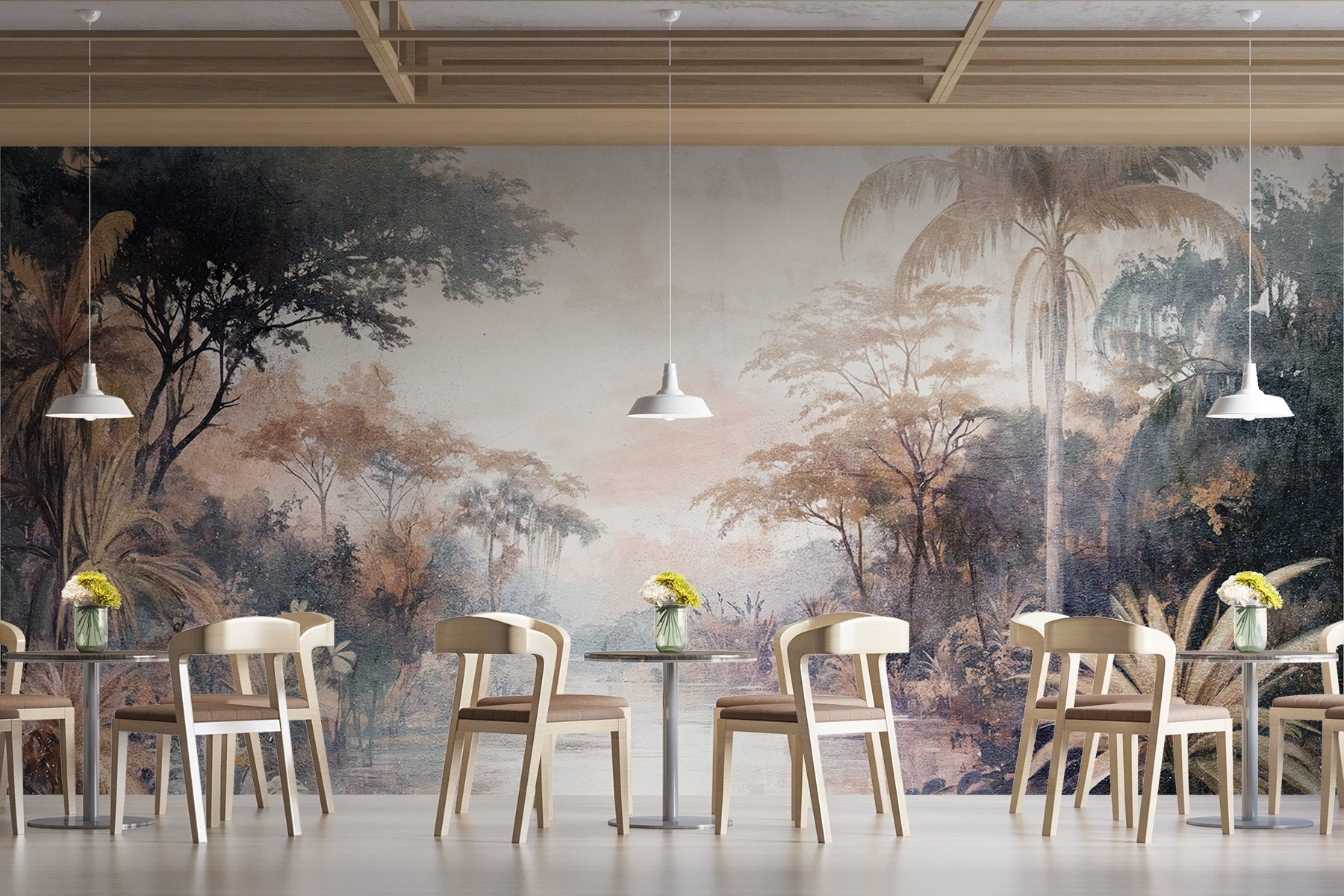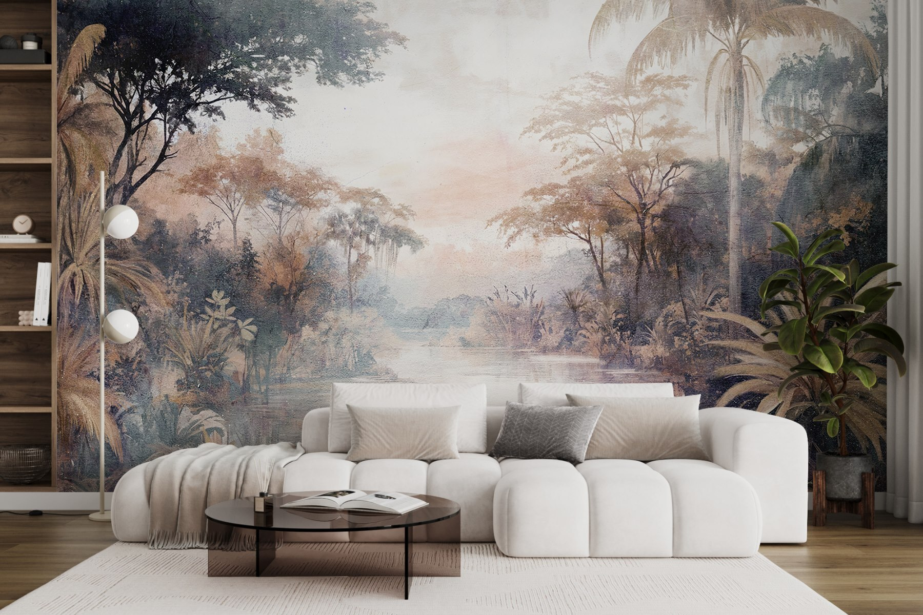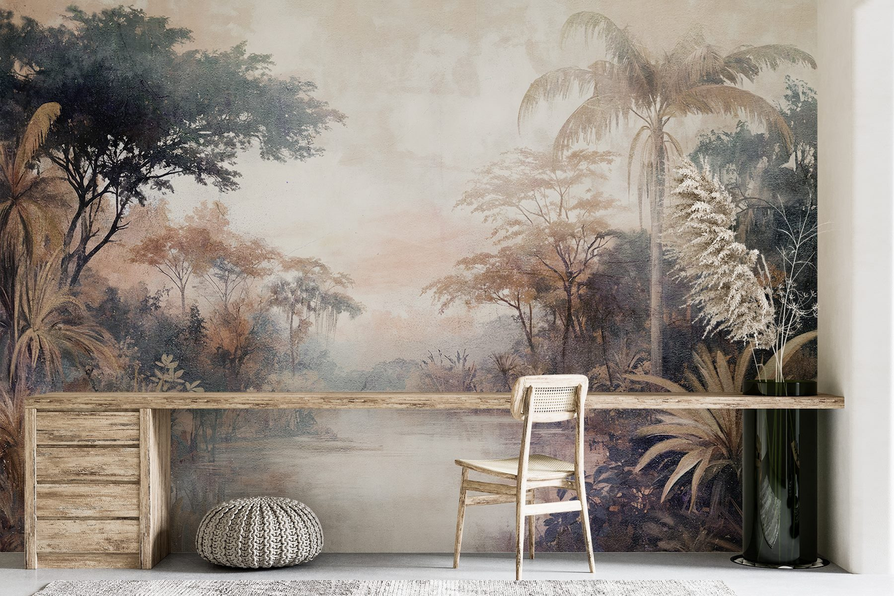 Tover je ruimte om in een sereen uitje met de “Muurschilderingen Rivier met Bomen en Planten”. Stel je voor dat je in een dromerig landschap stapt waar weelderig groen samenkomt met een rustige rivier – wat een sfeer! Deze muurschildering is niet zomaar een muurbekleding; het is alsof je een stukje natuur in huis hebt. De zachte, aardse tinten nodigen uit tot kalmte, waardoor elke luie zondag aanvoelt als een mini-vakantie. Stel je een knus leeshoekje voor met deze muurschildering als achtergrond en een warme kop thee in de hand. Opeens vervagen je zorgen en fluistert de natuur zoete woordjes. Perfect voor wie hunkert naar een tropisch tintje zonder zonnebrand. Het gaat niet alleen om decor – het gaat om gevoel!