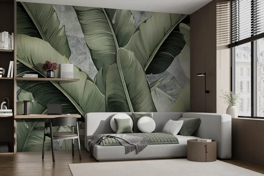 Stel je voor dat je een weelderige jungle binnenstapt telkens als je naar je muur kijkt. Deze muurschildering met kalmerende groene bladmotieven voelt als een zachte knuffel van de natuur. Perfect om je ruimte op te fleuren en rust uit te stralen. Of je nu aan je ochtendkoffie nipt of tot rust komt na een lange dag, deze mooie bladeren creëren de ultieme ontsnapping. Bovendien is het een fantastische gespreksstarter-“Oh, had ik al gezegd dat mijn muur op tropische vakantie is?”. Met zijn stijlvolle uitstraling voegt deze muurschildering een vleugje sereniteit en een vleugje avontuur toe aan elke kamer. Wie zou dat niet willen?