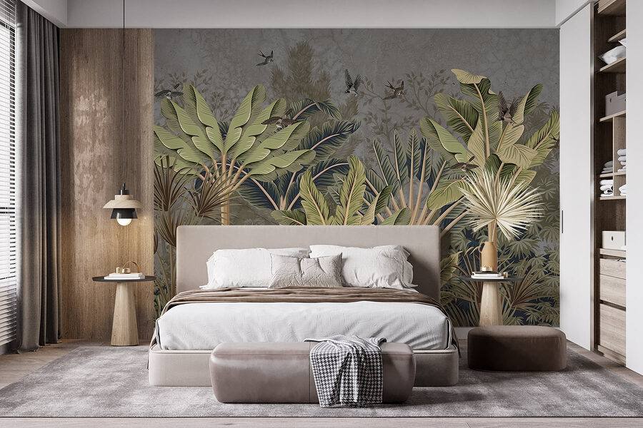 Tover elke kamer om in een serene ontsnapping met deze prachtige muurschildering van tropisch woud. Stel je voor dat je in een weelderig paradijs stapt, waar levendige bladeren zachtjes wiegen en vogels voorbij fladderen, fluisterend over de natuur. Het decoreert niet alleen een muur, het vertelt een verhaal en nodigt je uit om te dagdromen over exotische avonturen. Perfect voor een gezellige leeshoek of een levendige leefruimte, het voegt warmte en een vleugje van het buitenleven toe. Bovendien is het een geweldige gespreksstarter – wacht maar tot gasten je vragen of je stiekem een jungleontdekkingsreiziger bent geworden! Omarm de natuur zonder de muggen.