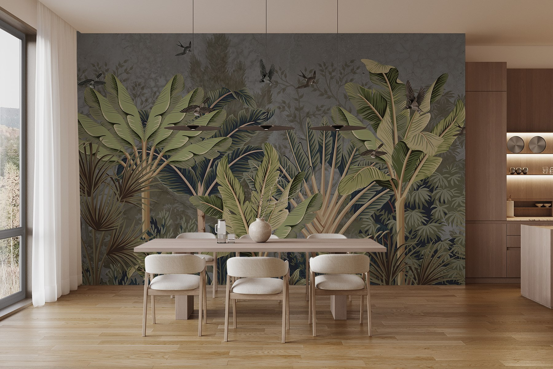 Tover elke kamer om in een serene ontsnapping met deze prachtige muurschildering van tropisch woud. Stel je voor dat je in een weelderig paradijs stapt, waar levendige bladeren zachtjes wiegen en vogels voorbij fladderen, fluisterend over de natuur. Het decoreert niet alleen een muur, het vertelt een verhaal en nodigt je uit om te dagdromen over exotische avonturen. Perfect voor een gezellige leeshoek of een levendige leefruimte, het voegt warmte en een vleugje van het buitenleven toe. Bovendien is het een geweldige gespreksstarter – wacht maar tot gasten je vragen of je stiekem een jungleontdekkingsreiziger bent geworden! Omarm de natuur zonder de muggen.