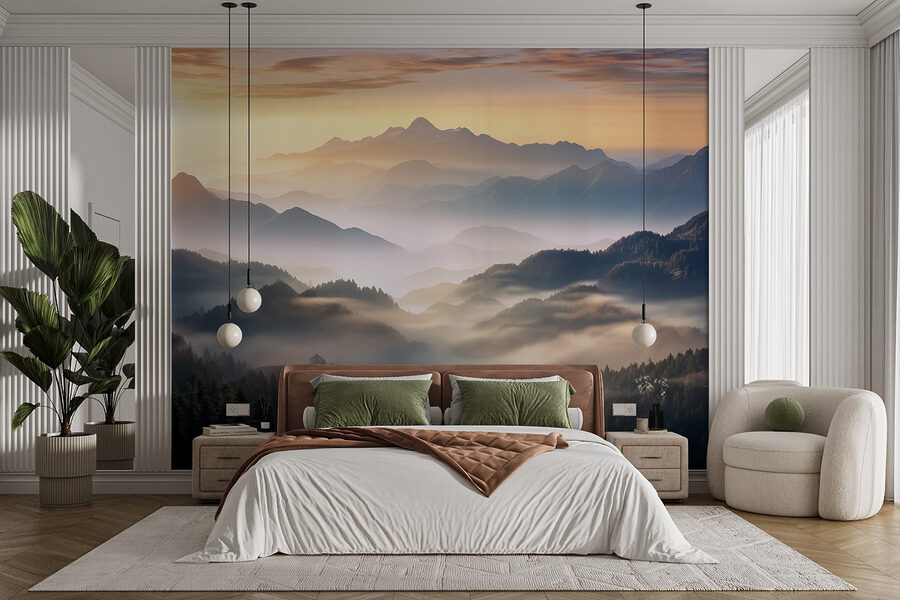 Verander elke kamer in een serene toevluchtsoord met deze prachtige muurschildering van bergen gehuld in betoverende mist. Stel je voor: wakker worden en begroet worden door een adembenemend uitzicht dat aanvoelt alsof je een dromerig landschap binnenstapt. Het delicate samenspel van mistige groentinten en blauwtinten kan de ziel kalmeren, waardoor het perfect is voor een rustig leeshoekje of een gezellige slaapkamer. Stel je voor dat je koffie drinkt terwijl je naar die verre bergtoppen staart en de stress van de dag voelt wegsmelten. Het is alsof je een stukje natuur in huis haalt, zonder dat je wandelschoenen nodig hebt! Met zijn rustgevende uitstraling nodigt deze muurschildering uit tot een zachte, verfrissende energie waardoor iedereen zich meteen thuis voelt. Bovendien is het een fantastisch gespreksonderwerp. Wie wil er nu niet praten over het ‘mooiste’ uitzicht op de bergen dat hij ooit heeft gezien?
