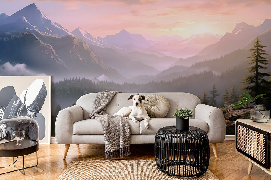 Transformeer uw ruimte met deze prachtige muurschildering, met een adembenemend landschap van bergen en bomen. Stelt u zich eens voor dat u wakker wordt met dat zachte ochtendlicht dat door de bergtoppen schijnt – het is alsof u thuis een stukje rust binnenhaalt. De rijke groentinten en zachte kleuren nodigen je uit om diep adem te halen, alsof je een wandeling door het bos maakt. Of het nu in de woonkamer is of in een gezellig leeshoekje, deze muurschildering voegt een vleugje natuurschoon toe, waardoor elk moment een beetje rustiger aanvoelt. Vrienden zullen zich misschien zelfs afvragen of je stiekem naar een berghut bent verhuisd. Denk maar eens aan alle gezellige vibes! Perfect voor natuurliefhebbers die een beetje van het buitenleven binnen willen halen.