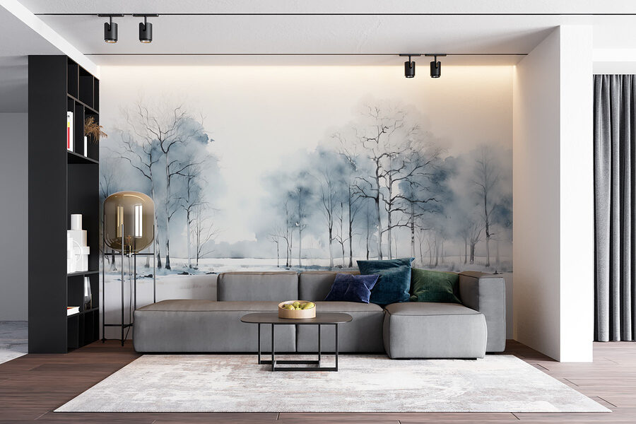 Verander elke muur in een serene toevluchtsoord met deze betoverende muurschildering van een besneeuwd veld bezaaid met bomen. Stel je voor: op een koude avond kruip je lekker weg met een boek terwijl deze rustige scène je ruimte omhult. De zachte tinten blauw en wit creëren een rustgevende sfeer, perfect om te ontspannen of zelfs om even stil na te denken. Het is alsof je een beetje wintermagie in huis haalt, zonder koude tenen! Of je nu een natuurliefhebber bent of gewoon een gesprek wilt aanknopen, deze muurschildering nodigt je uit om even stil te staan, diep adem te halen en te genieten van een beetje rust, gewoon thuis.