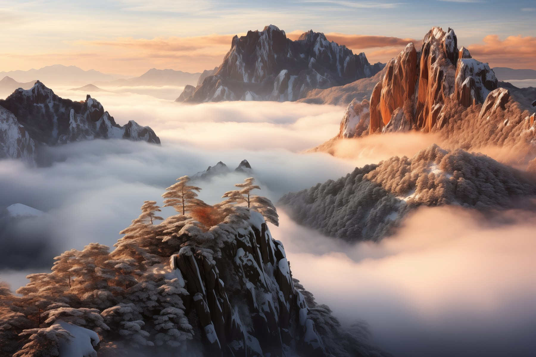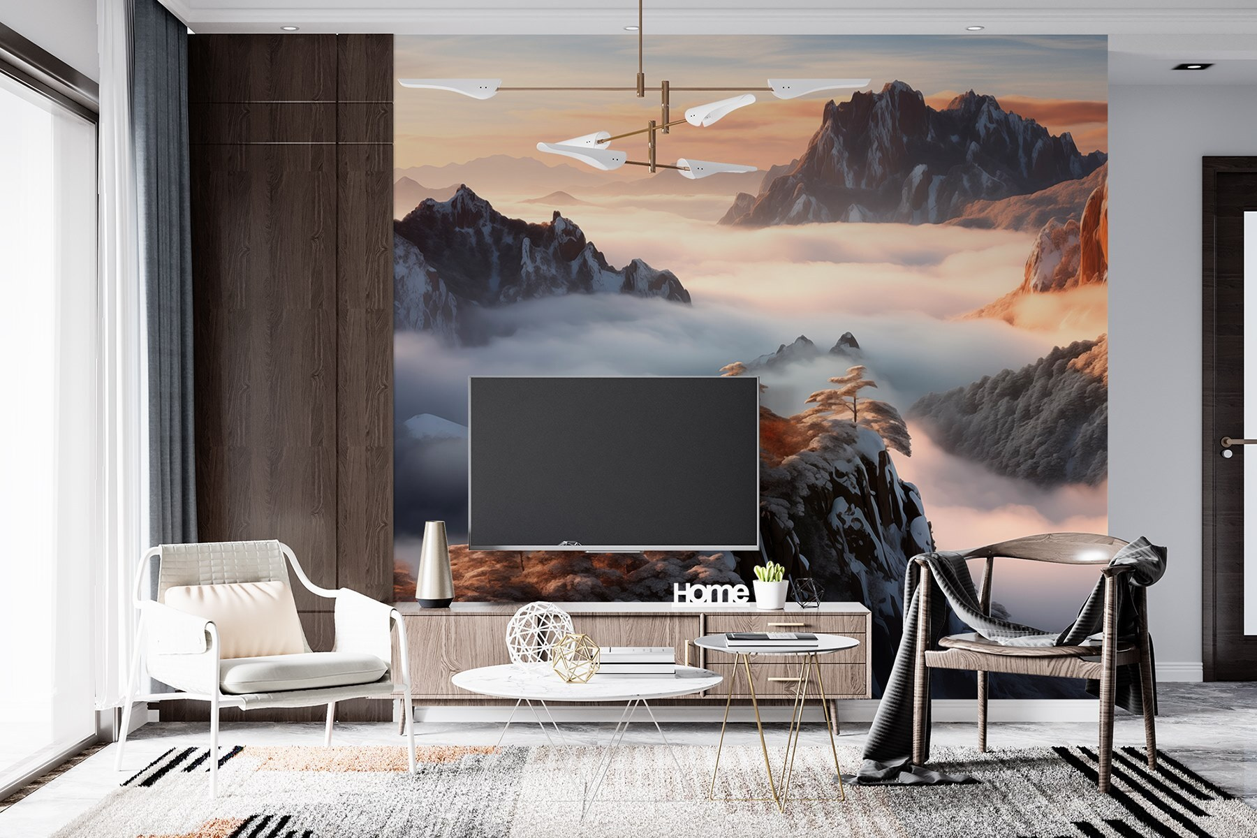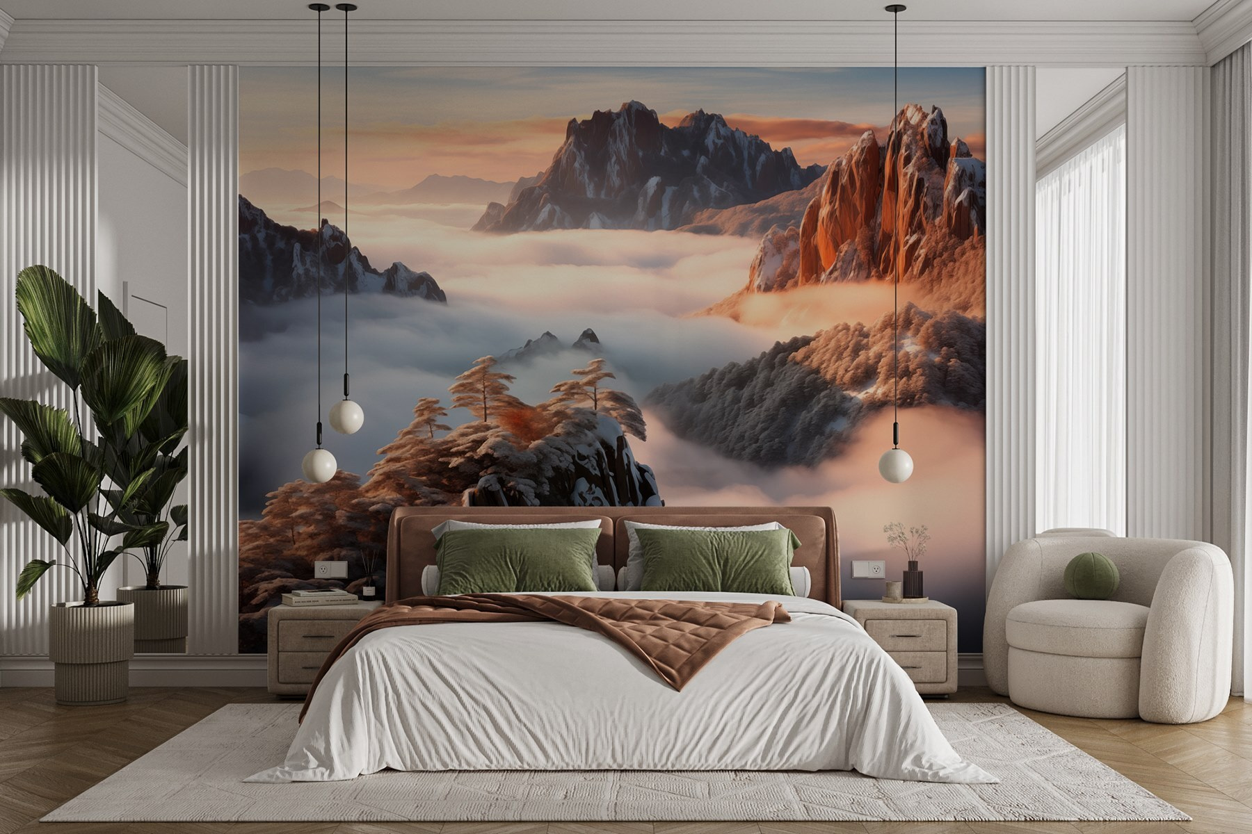 Verander uw ruimte in een serene toevluchtsoord met deze adembenemende muurschildering van een met sneeuw bedekte bergketen, gehuld in zachte, wervelende wolken. Stel u voor dat u van uw koffie nipt terwijl u uitkijkt op majestueuze bergtoppen die verhalen over avontuur lijken te fluisteren. Het is alsof u een winterwonderland binnenstapt, maar dan zonder het sneeuwruimen. Deze muurschildering brengt een perfecte mix van rust en grandeur in elke kamer, of het nu een gezellige hoek is of een drukke woonkamer. Laat de koele kleuren u omhullen, zodat elke dag aanvoelt als een vredig toevluchtsoord. Bovendien is het een gegarandeerde gespreksstarter! Wie kan het nu weerstaan om over dat prachtige uitzicht te praten? Perfect voor natuurliefhebbers of iedereen die wat rust in zijn leven nodig heeft.