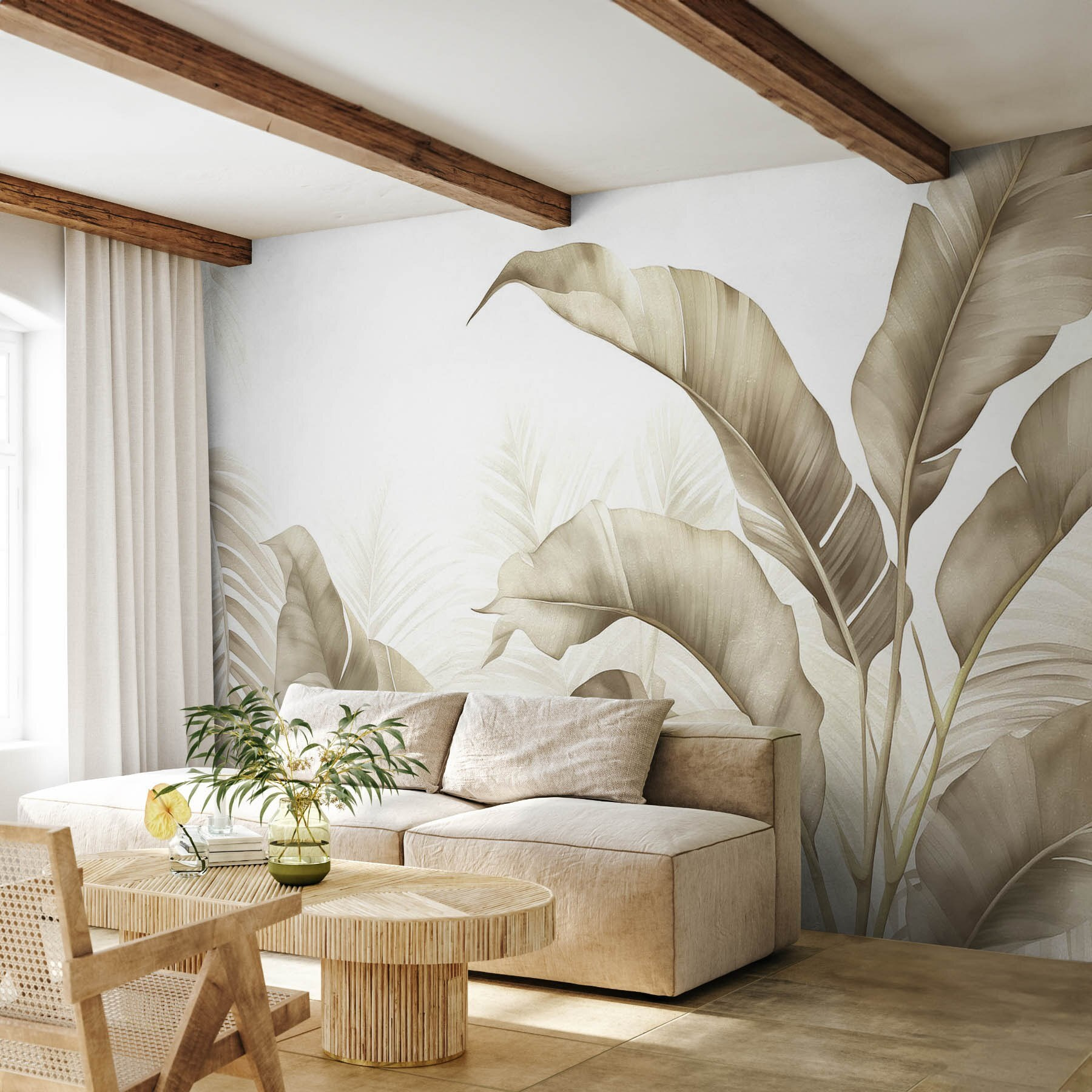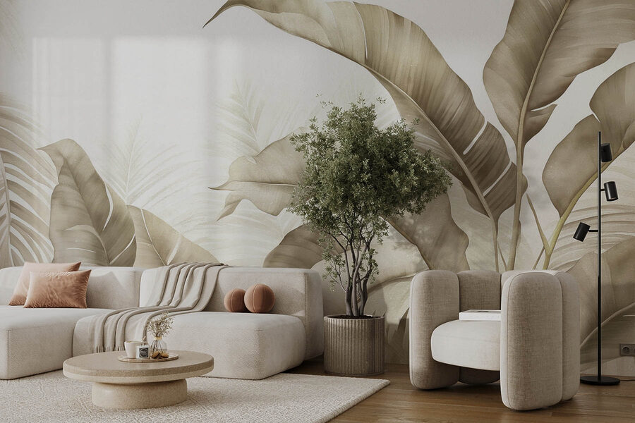 Verhoog je ruimte met deze prachtige muurschildering met een prachtig ontwerp van natuurlijke tinten en elegant gebladerte. Stel je voor dat je een kamer binnenloopt waar zacht groen en zacht bruin je omarmen, bijna als een warme knuffel van de natuur. Het is perfect voor die dagen waarop je droomt van een tropisch uitje, zonder dat je je huis hoeft te verlaten. De naadloze mix van bladeren voegt een vleugje verfijning toe, waardoor zelfs de kleinste ruimte aanvoelt als een weelderige oase. Verander een saaie muur in een conversatie starter-gasten zullen het niet laten om even te stoppen om het te bewonderen. Is het kunst? Is het natuur? Misschien is het wel allebei!