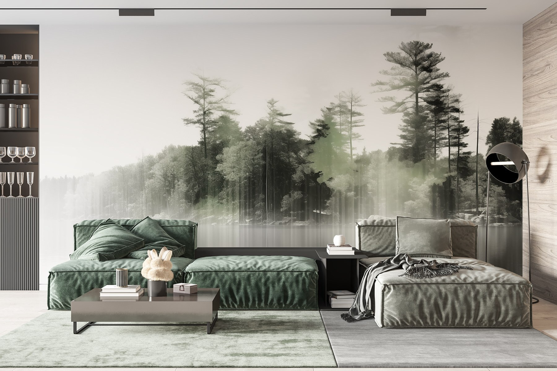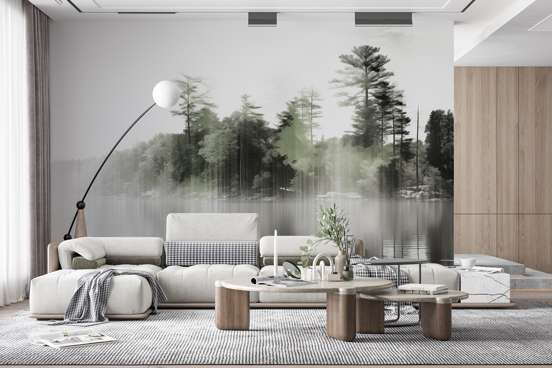 Een muur omtoveren met een muurschildering als deze kan voelen alsof je een vredig toevluchtsoord binnenstapt. Stel je het zachte gefluister van mist voor die over serene wateren hangt, omlijst door hoge bomen die de wacht houden. Het nodigt uit tot kalmte, bijna als een luie zondagochtend die je doorbrengt met koffie terwijl je kijkt hoe de natuur ontwaakt. Als het licht erdoorheen valt, is er een etherische kwaliteit die van elke blik een kleine ontsnapping maakt. Het is perfect om een gezellig leeshoekje te creëren of gewoon een plek om even stil te staan. Hang hem op en laat de schoonheid van de stille elegantie van de natuur uw ruimte overspoelen en zowel gesprekken als dagdromen aanwakkeren.