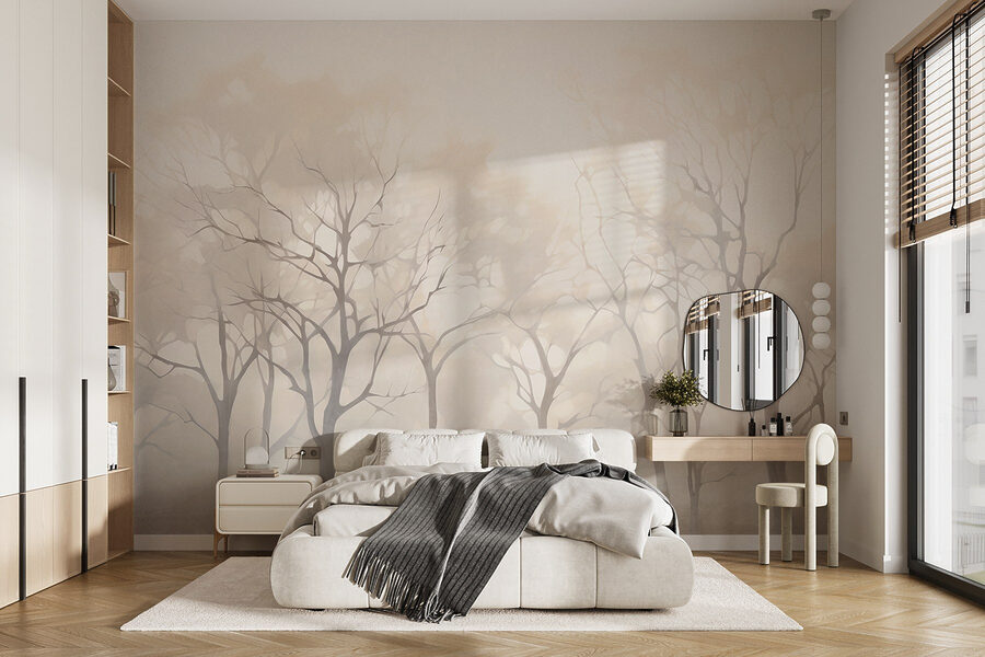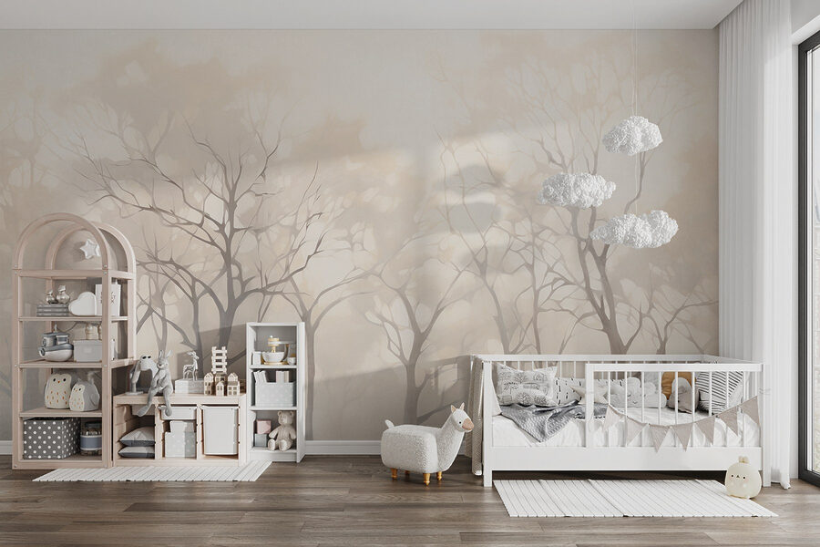 Transformeer je ruimte met een dromerige muurschildering die een serene bosgezicht vastlegt, waar bomen hoog oprijzen te midden van een zachte mist. Stel je voor dat je in een rustig moment stapt en het zachte gefluister van de natuur over je heen voelt komen. De gedempte kleuren brengen een gevoel van rust – perfect voor een gezellige leeshoek of een rustige slaapkamer. Het is alsof je een beetje van het buitenleven naar binnen brengt zonder het vuil of de insecten! Stel je voor dat je in gedachten verzonken bent, nippend aan je koffie, terwijl deze muurschildering je omarmt. Het is niet alleen decor; het is een uitnodiging om wat dieper adem te halen en tot rust te komen.