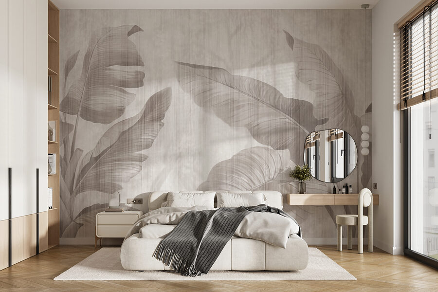 Stel je eens voor dat je een ruimte binnenstapt die aanvoelt als een serene wandeling door een dromerig bos. Deze elegante monochrome bladschildering voegt een vleugje rust uit de natuur toe aan je muren. De vloeiende patronen creëren een zachte dans van bladeren die bijna levend lijken en geheimen van het buitenleven fluisteren. Het is perfect voor een gezellige leeshoek of een rustige slaapkamer. Stelt u zich eens voor: lekker wegkruipen met een goed boek, omringd door deze rustige sfeer. Het is alsof je een knuffel van de natuur krijgt, zelfs binnenshuis. Wie wist dat een muur zo verfrissend kon aanvoelen? Deze muurschildering is perfect voor mensen die de kleine details in het leven waarderen en heeft een moeiteloze charme die elke kamer kan opfleuren.