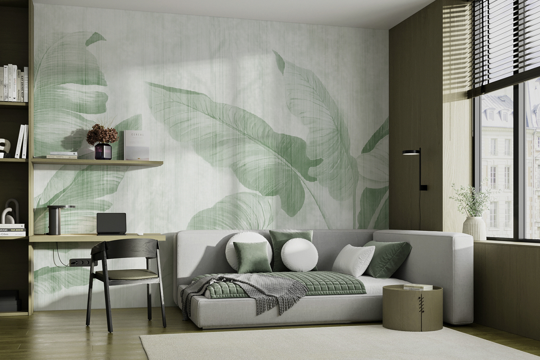 Tover elke kamer om in een serene oase met deze fascinerende muurschildering van weelderige groene bladeren op een subtiel charmante achtergrond. Stel je voor dat je een tropisch toevluchtsoord binnenstapt – geen paspoort nodig. Perfect om een frisse vibe aan je leefruimte toe te voegen, het voelt alsof de natuur naar binnen gluurt. Of het nu een gezellig leeshoekje is of een opvallende muur, dit ontwerp brengt een gevoel van rust en kalmte. Vrienden zouden je zelfs kunnen vragen of je een geheime tuin hebt. Het is een geweldige gespreksstarter! En wie houdt er niet van een beetje magie om elke dag wakker te worden?