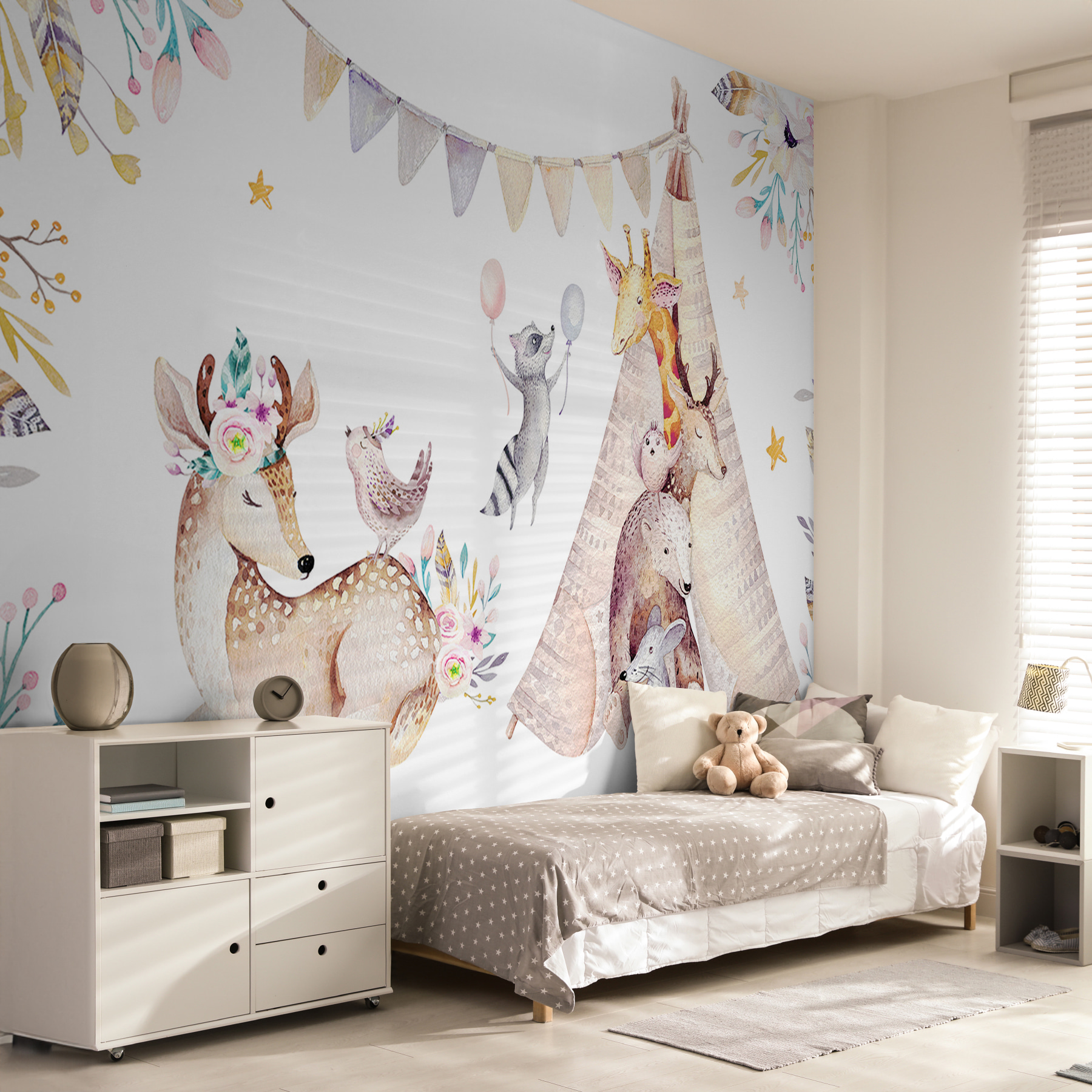 Perfect voor de kamer van je dochter of elke andere kinderruimte, het voelt als een knuffel van de natuur! Stel je voor dat je kleintje ‘s ochtends wakker wordt en naar de wasbeer zwaait… of verhaaltjes vertelt voor het slapengaan onder de waakzame ogen van de giraffe en het hert. Het is net alsof je een stukje fantasiebos bij je thuis hebt – supergezellig en hartverwarmend. De zachte kleuren passen naadloos bij de meeste decors en creëren een serene en toch speelse sfeer. Gewoonweg schattig!