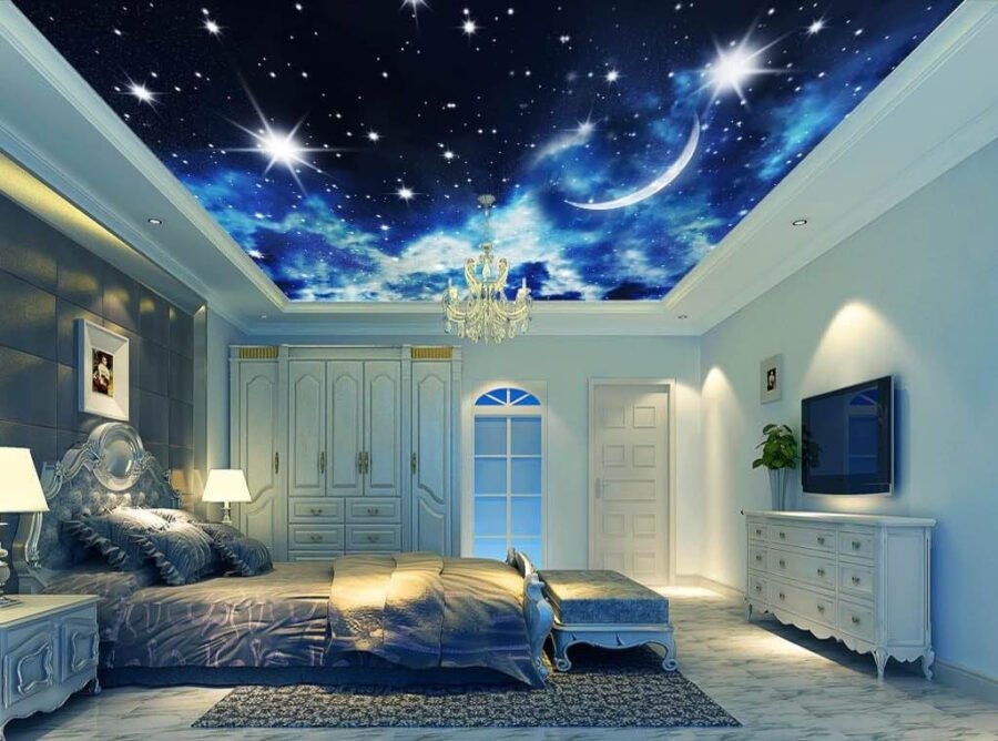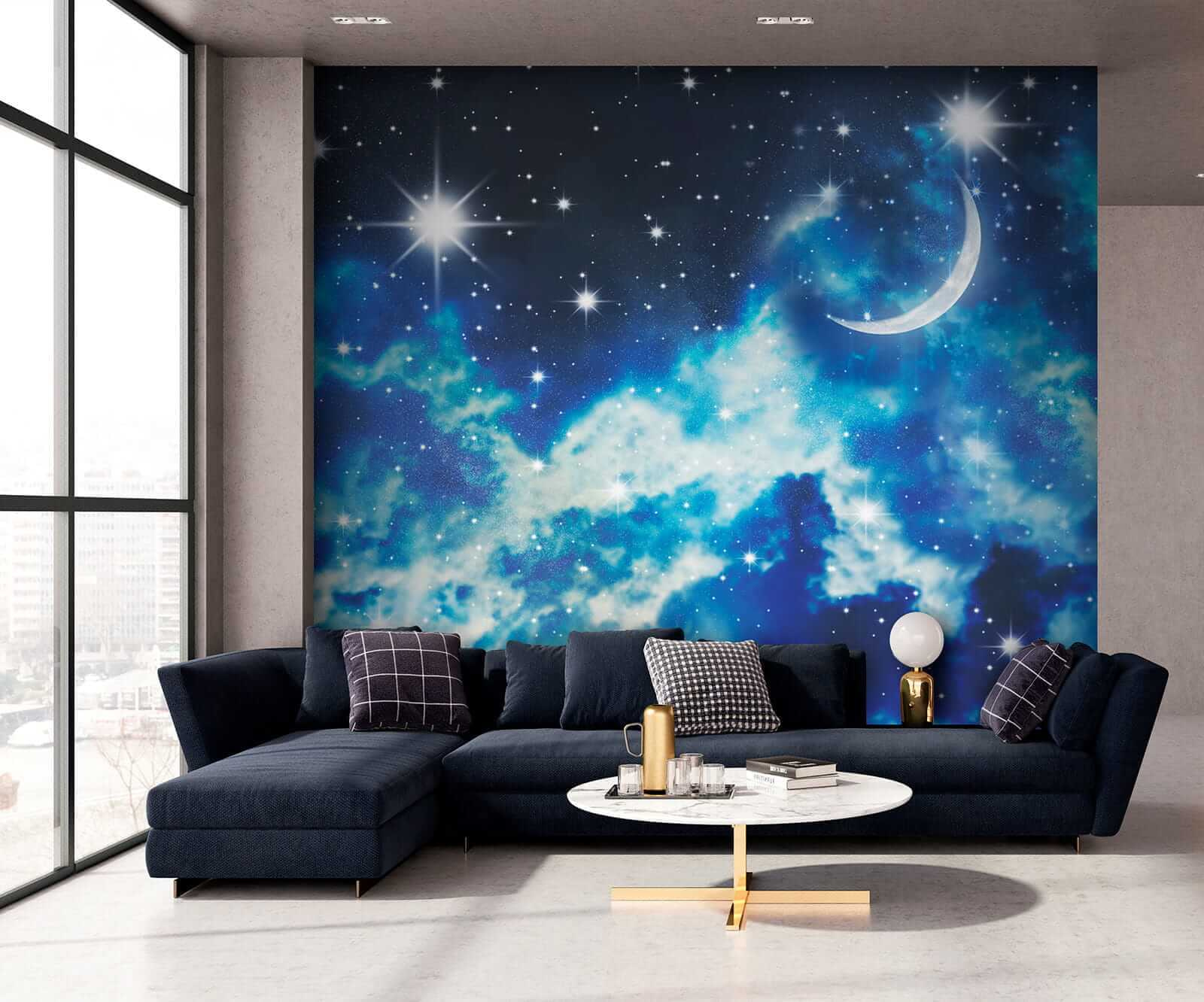 Tover een kamer om in een dromerige ontsnapping met de “Fotobehang Bright Light in the Sky”. Stel je voor: zacht blauw en zacht wit wervelen als wolken aan een rustige avondhemel, bezaaid met fonkelende sterren en een serene maansikkel. Het is alsof je de kosmos naar binnen haalt! Stel je gezellige avonden voor onder deze muurschildering, waar het lezen van een verhaaltje voor het slapengaan voelt als een sterrenavontuur. Kinderen zullen gefascineerd zijn en zelfs volwassenen zouden willen dat ze tussen de sterren konden zweven. Deze muurschildering is niet alleen decor; het is een uitnodiging om groots te dromen en je de avonturen voor te stellen die achter de horizon wachten. Perfect voor een speelkamer of kinderkamer, het verlicht echt de ruimte met een gevoel van verwondering en eindeloze mogelijkheden.