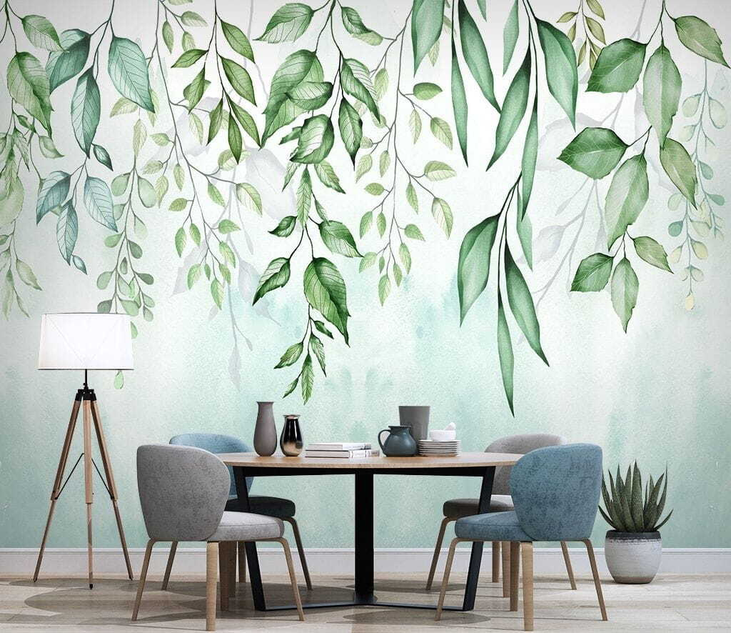 Stel je voor dat je na een lange dag thuiskomt, op je bank neerploft en je meteen ontspannen voelt door alleen maar naar dit zachte, bladerrijke tafereel te kijken. Het aquareleffect is zo rustgevend – het is net een aquarelschilderij dat tot leven is gekomen! En de manier waarop de bladeren naar beneden vallen? Gewoon betoverend. Het is opvallend zonder overweldigend te zijn, waardoor het een passende keuze is voor iedereen die van de natuur houdt maar de voorkeur geeft aan een subtielere toets in hun inrichting.