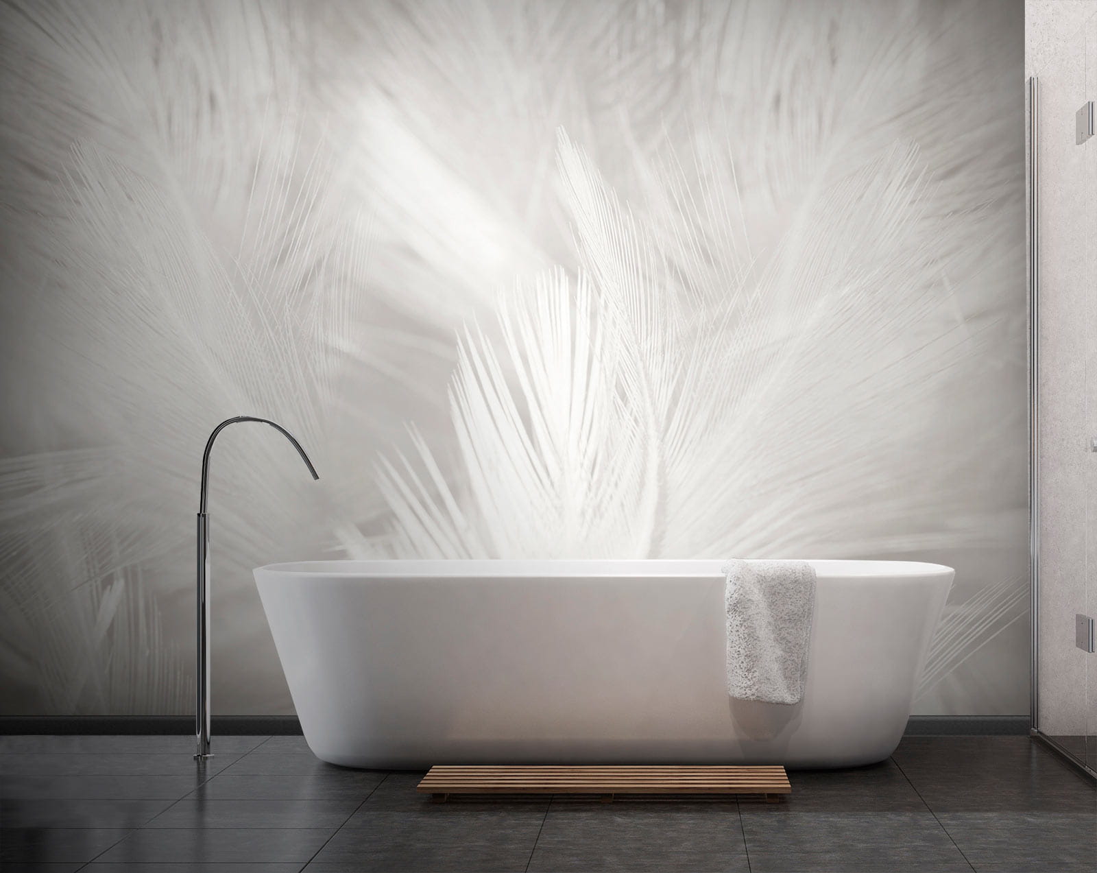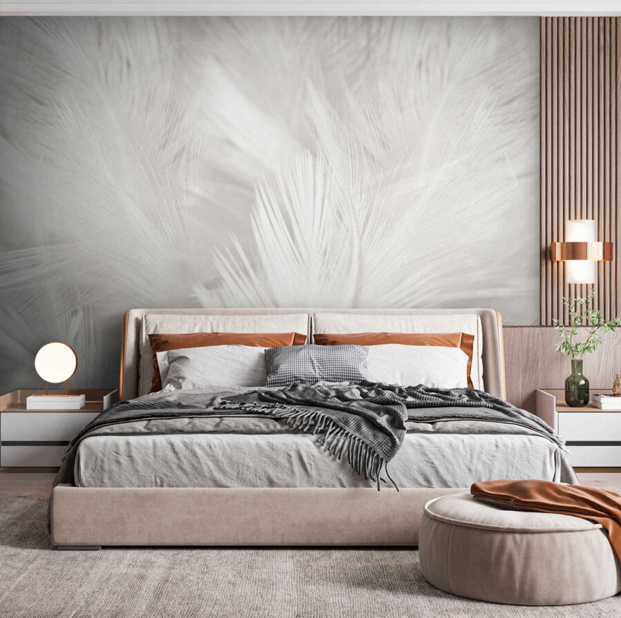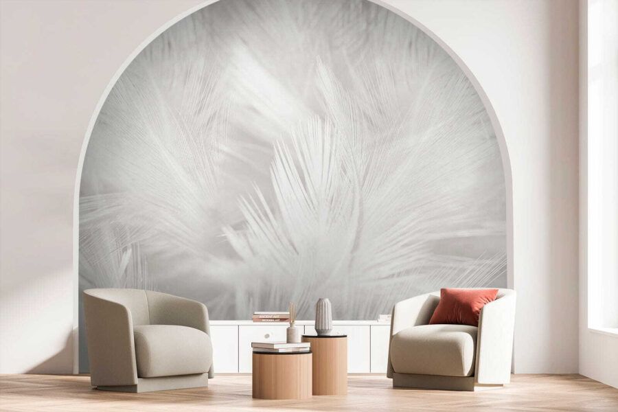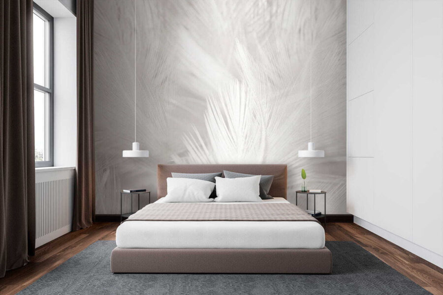 De zachtheid van het wit op wit geeft een serene sfeer en wie kan er nu niet wat meer rust in zijn kamer gebruiken? Perfect voor gezellige avonden of rustige ochtenden met een kopje koffie. En het gaat niet alleen om het uiterlijk! Deze muurschildering kan elke kamer een ruimer en luchtiger gevoel geven.
