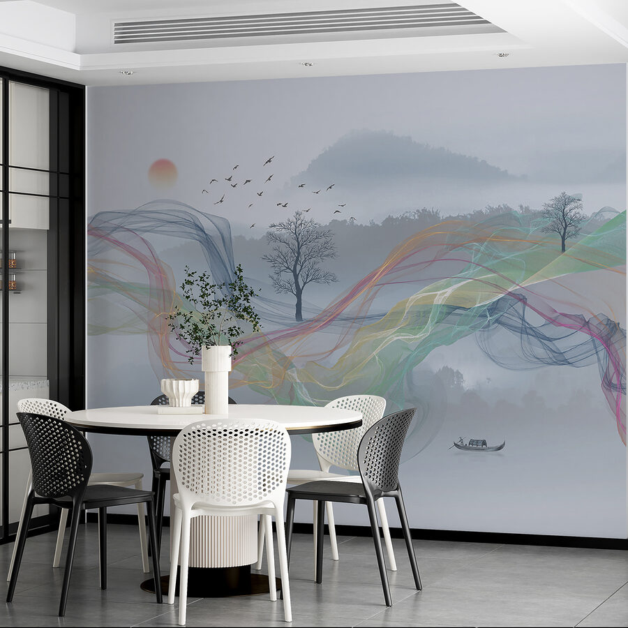 Verander een effen muur in een serene ontsnapping met de Fotobehang Tree with No Leaves. Dit ontwerp fluistert rust uit, met een sierlijk boomsilhouet te midden van zachte kleurstrepen die stromen als een zacht briesje. Zie het voor je in een gezellige leeshoek, waar het ochtendlicht over het oppervlak danst en uitnodigt tot vredige momenten met een warme kop thee.
