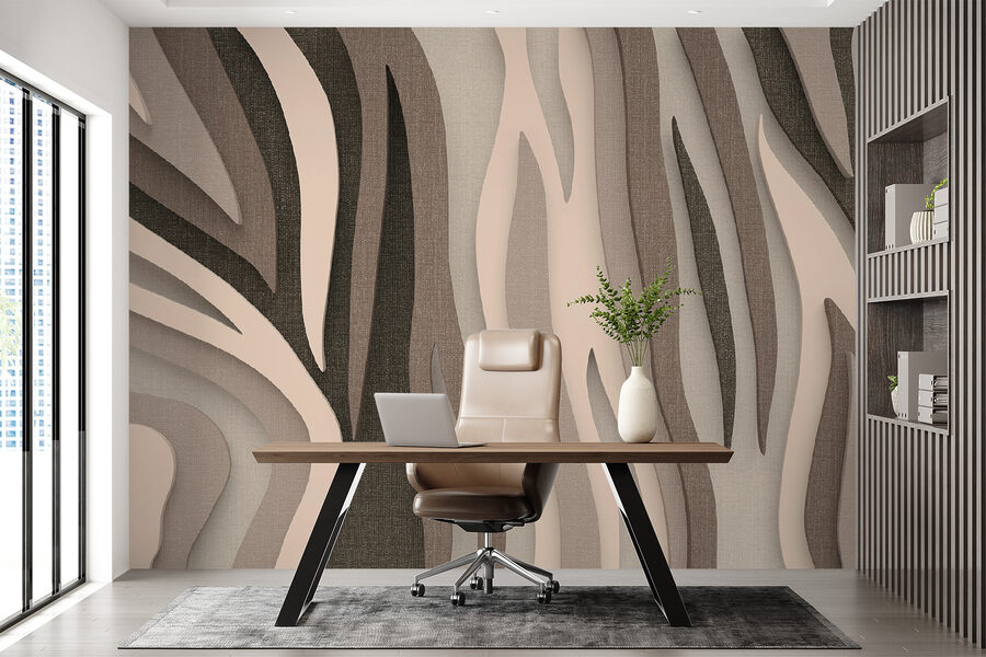 Bekijk deze muurschildering, “Abstracte gelaagde textuurkunst van stof”. Het is net alsof je muur wordt omgetoverd tot een stuk moderne kunst! De gelaagde textuur geeft het een tactiele look – perfect om een beetje verfijning en warmte toe te voegen aan elke kamer. Stel je voor dat je een gezellige avond hebt in je woonkamer, met deze muurschildering in het zachte schijnsel van de lamp naast je favoriete leesstoel… Voelt huiselijk aan, nietwaar?