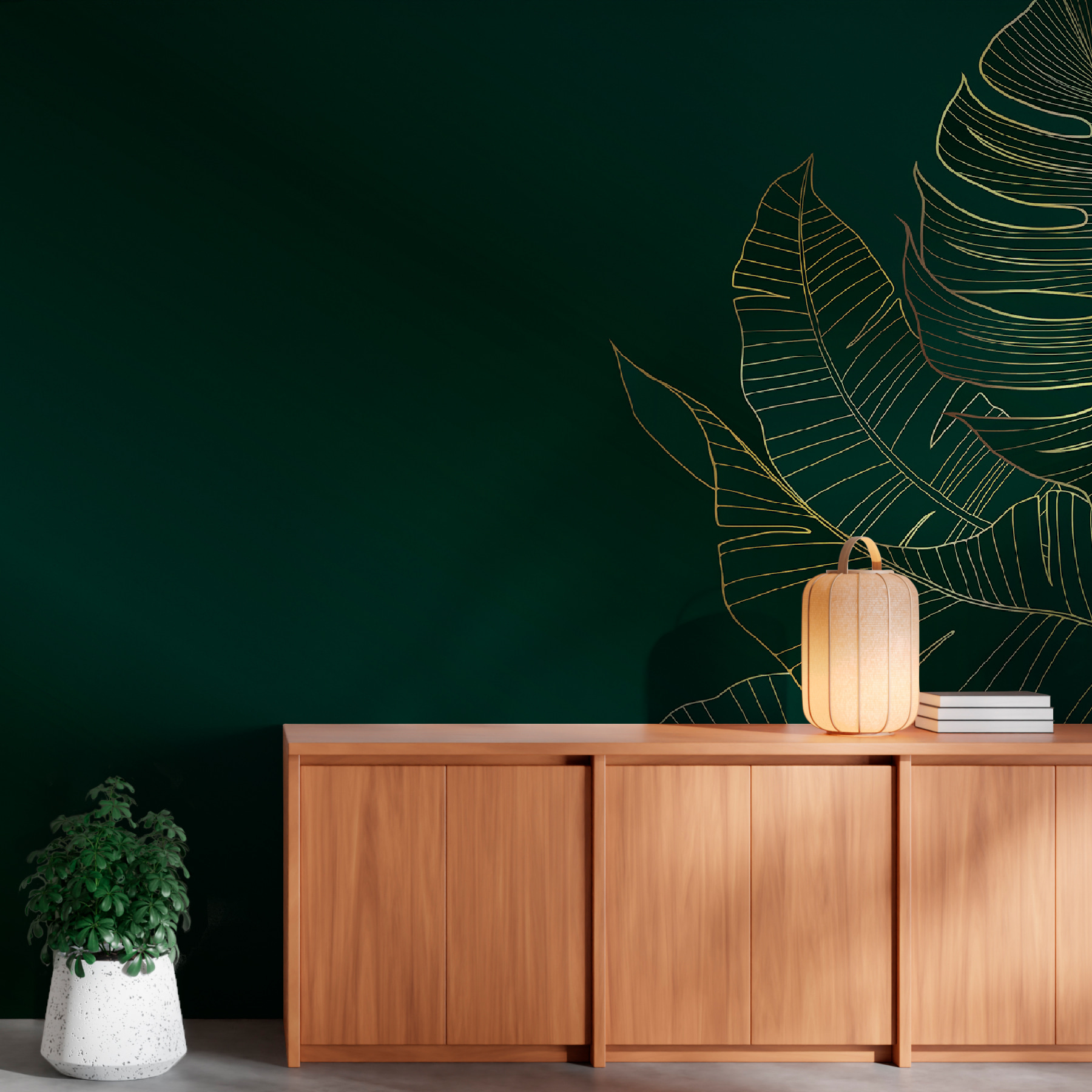 Transformeer je ruimte met deze prachtige Muurschildering Elegante Bladeren op Donkere Achtergrond. Stel je voor dat je thuiskomt bij de rustgevende aanblik van weelderige bladeren, die bijna geheimen van de natuur fluisteren. De diepe tinten creëren een gezellige sfeer, waardoor je kamer aanvoelt als een klein heiligdom. Het is alsof je een stukje van het buitenleven krijgt zonder de insecten of het weerdrama. Perfect voor een woonkamer of een leeshoekje, deze muurschildering brengt een vleugje rust op elke plek. Het is alsof je je muren een stijlvolle make-over geeft met een vleugje charme van de natuur. Wie houdt er niet van bladerrijke sferen?