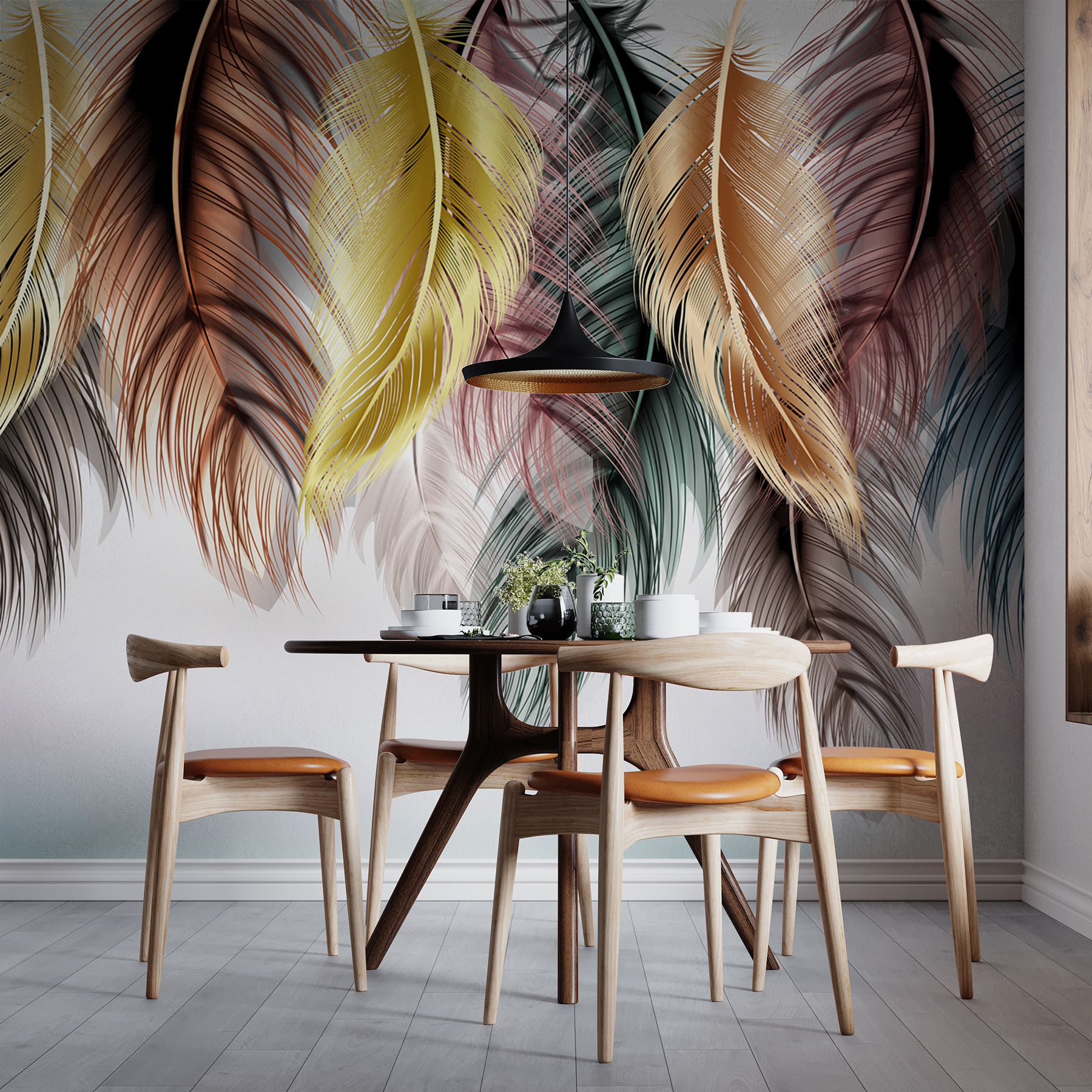Hé, heb je deze “Veren in Levendige, Verbluffende Tinten” muurschilderingen gezien? Ze zijn echt prachtig. Stel je voor dat je je woonkamer of slaapkamer binnenloopt en begroet wordt door een waterval van kleurrijke veren – het is net een klein kunstwerk aan je muur dat ieders aandacht trekt.